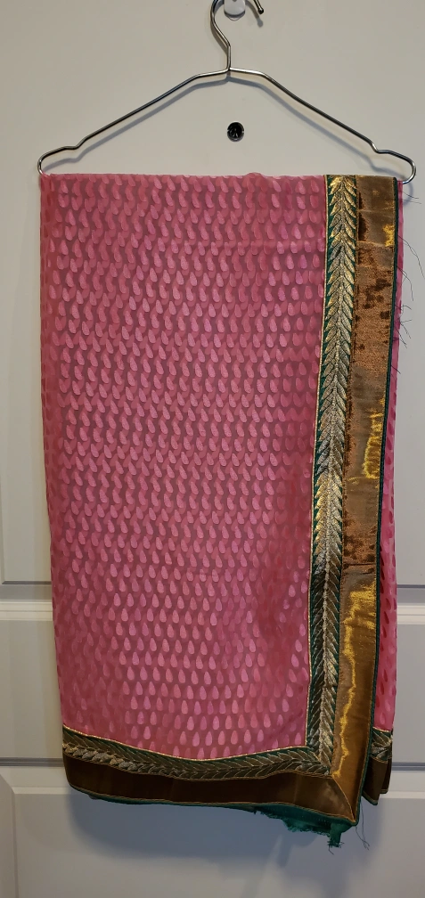 Pink saree with an embroidered border, perfect for any occasion. unfinished blouse material included. #sari #saree #indianclothing