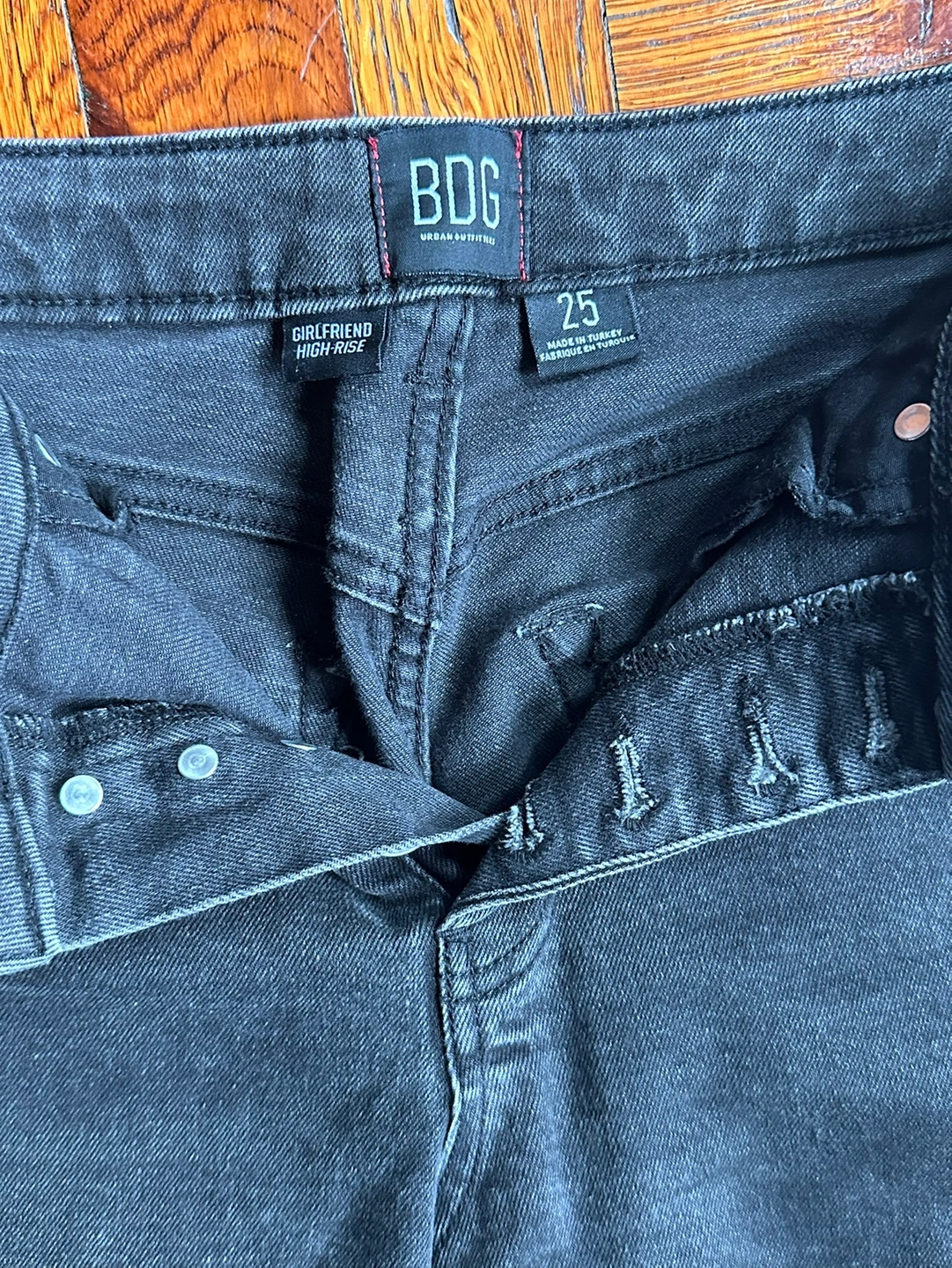 210Girlfriend High Rise jeans from urban outfitters. Very good jeans unfortunately doesn’t fit me anymore. Condition : Good Size : 25 Brand : Urban outfitters