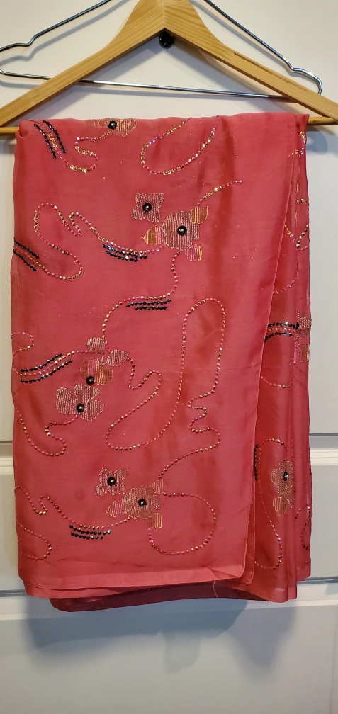 A pink sari with embroidered flowers and sequins. #sari #saree #indianclothing