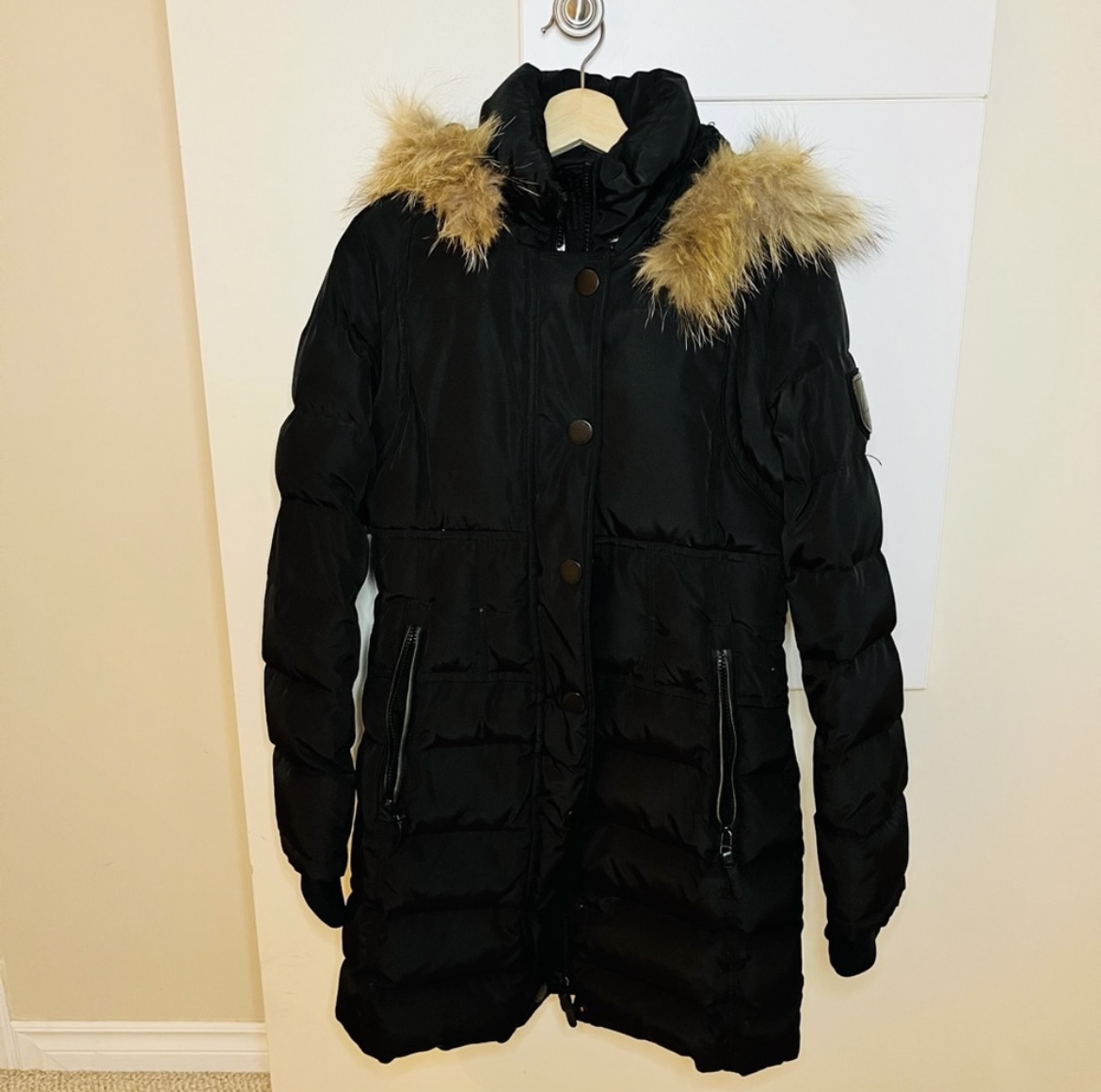 Full zip, insulated, pockets, warm, detachable, fluffy hood