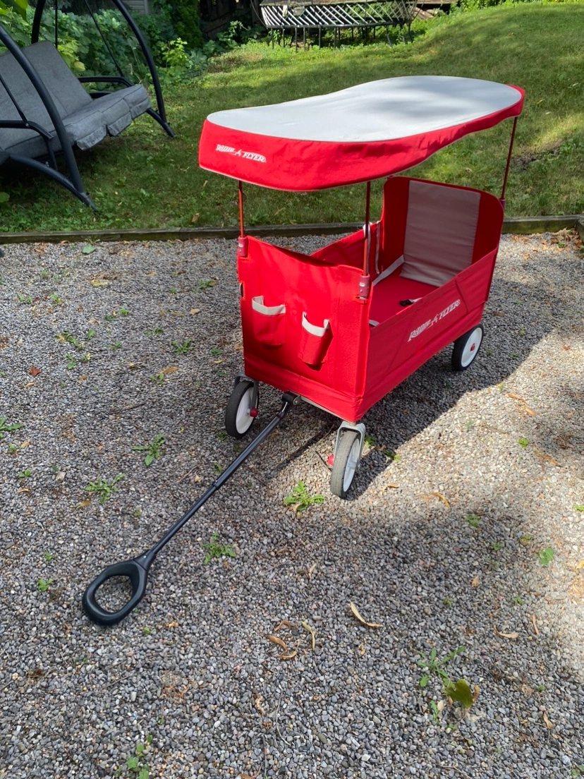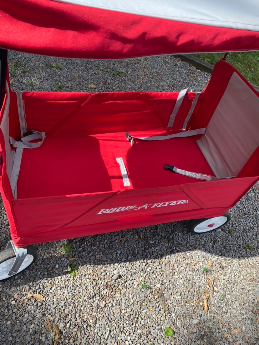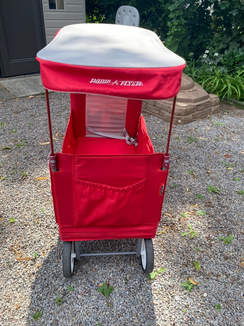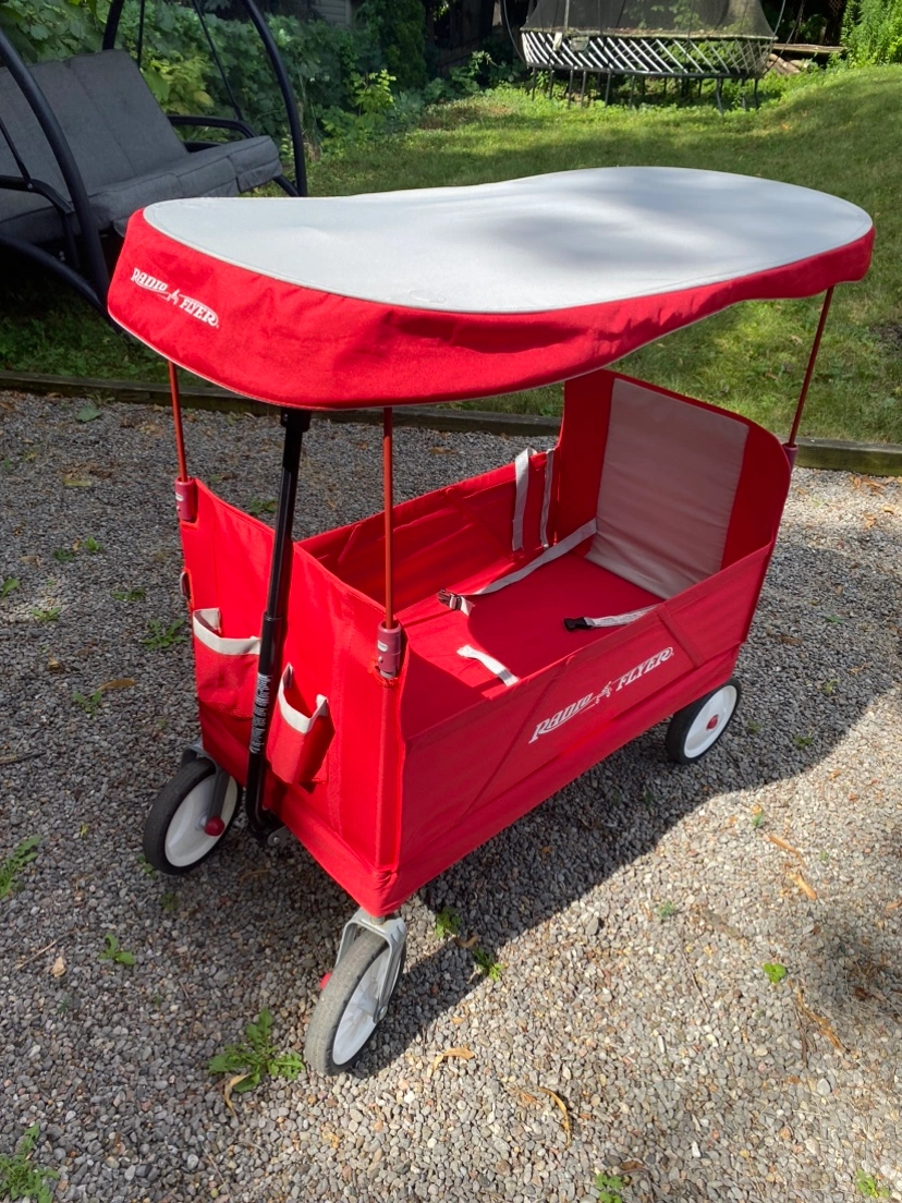 SAFE FOR KIDS: Radio Flyer wagons pass the ASTM-f963-13 toy safety standard. This wagon includes seat belts and a UV protection canopy to protect your little ones from the sun.