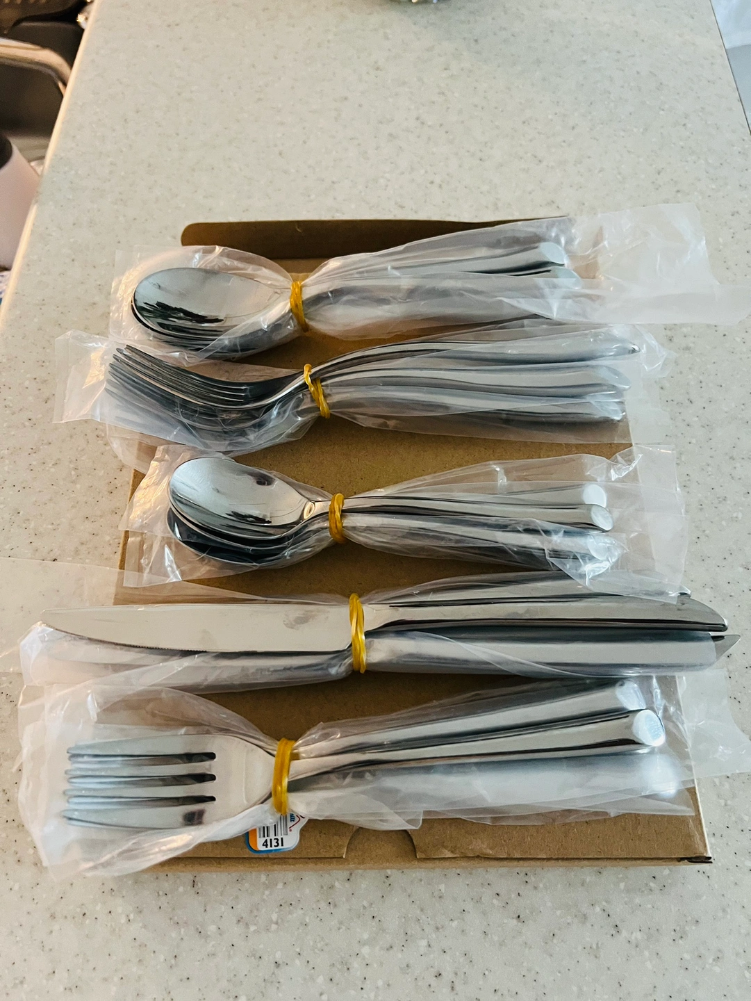 Includes: 4 salad forks, 4 dinner forks, 4 dinner knives, 4 soup spoons, and 4 teaspoons from smoke/ pet free home.