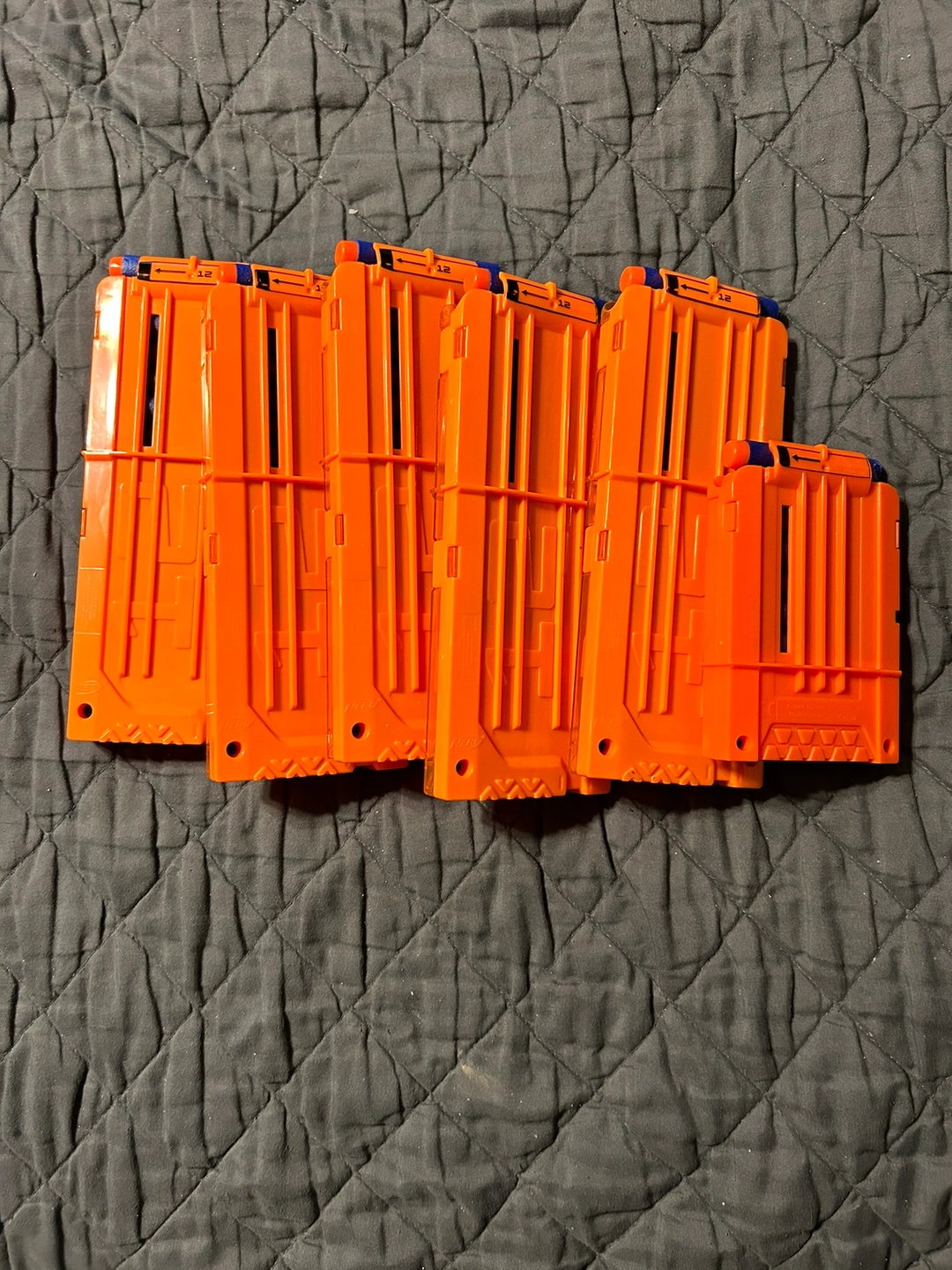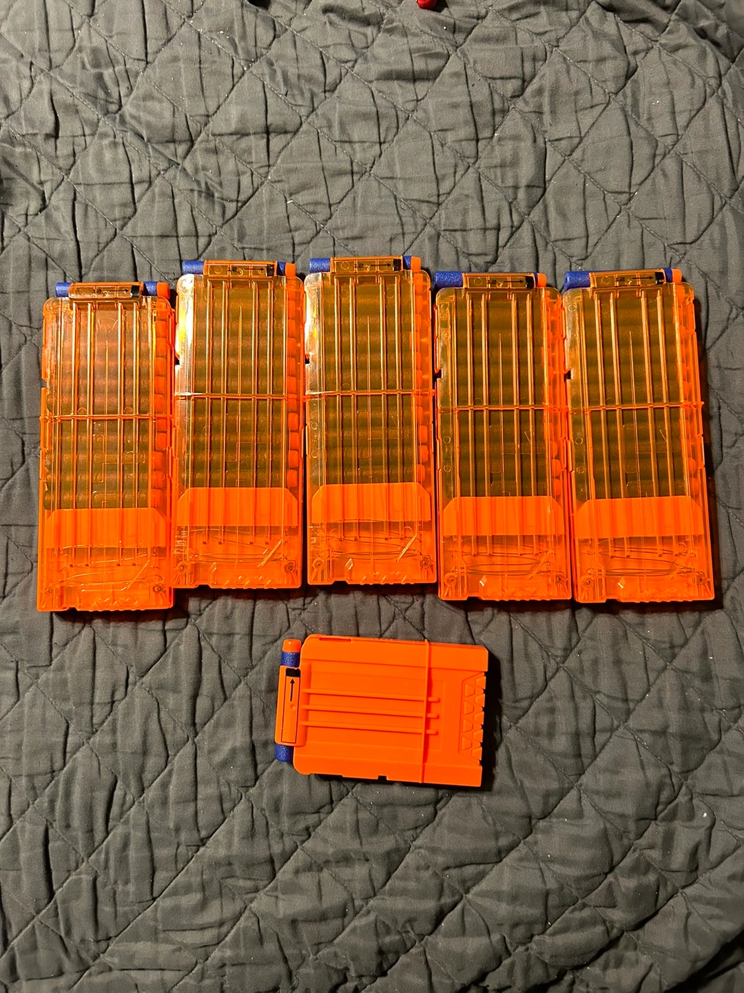 6 Nerf Magazines With Brand New Darts Lot. Each magazine has all new darts and there are 30 extra new ones. price is for all