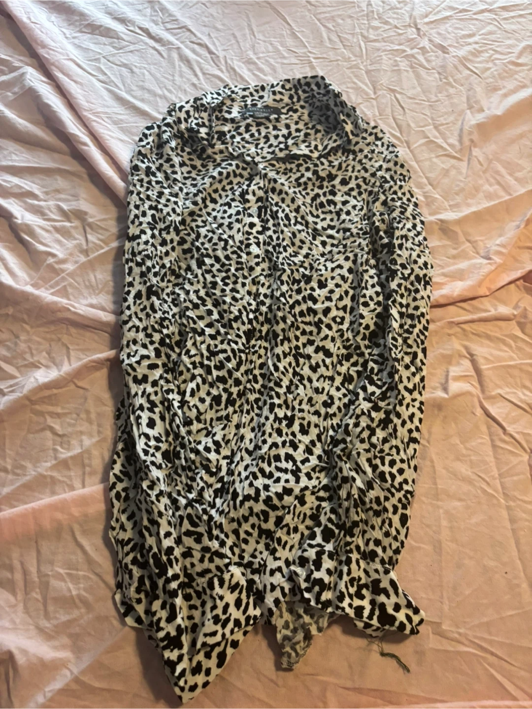 Selling a Suzy Shier shirt in size L. It features a stylish black and white pattern. This shirt is in great condition and ready for a new wardrobe!