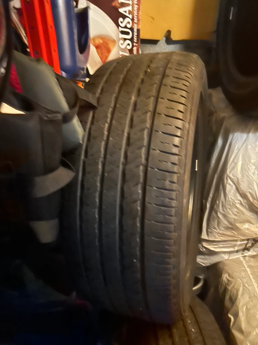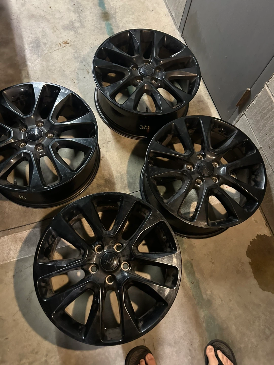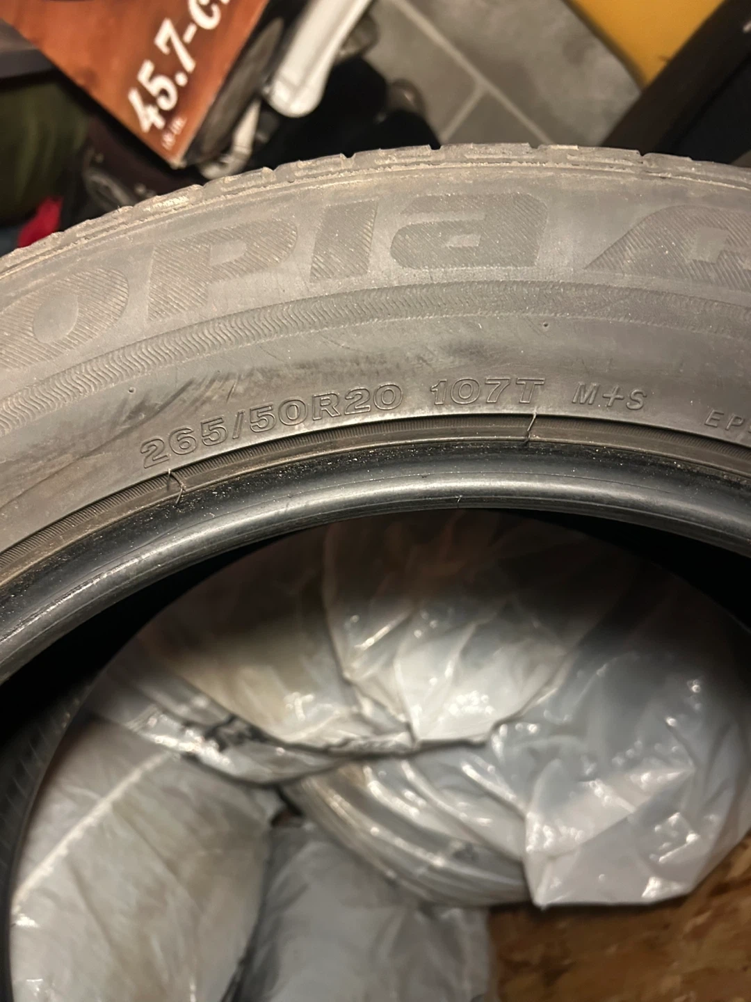 10Selling 4 Jeep rims with 4 Bridgestone standard all-season tire in mud and light snow.(M+S). The tire and rim size are 265/50R20. They are in used condition, not mounted, and ready for a new home! Sold together, FCFS, no holds, OBO