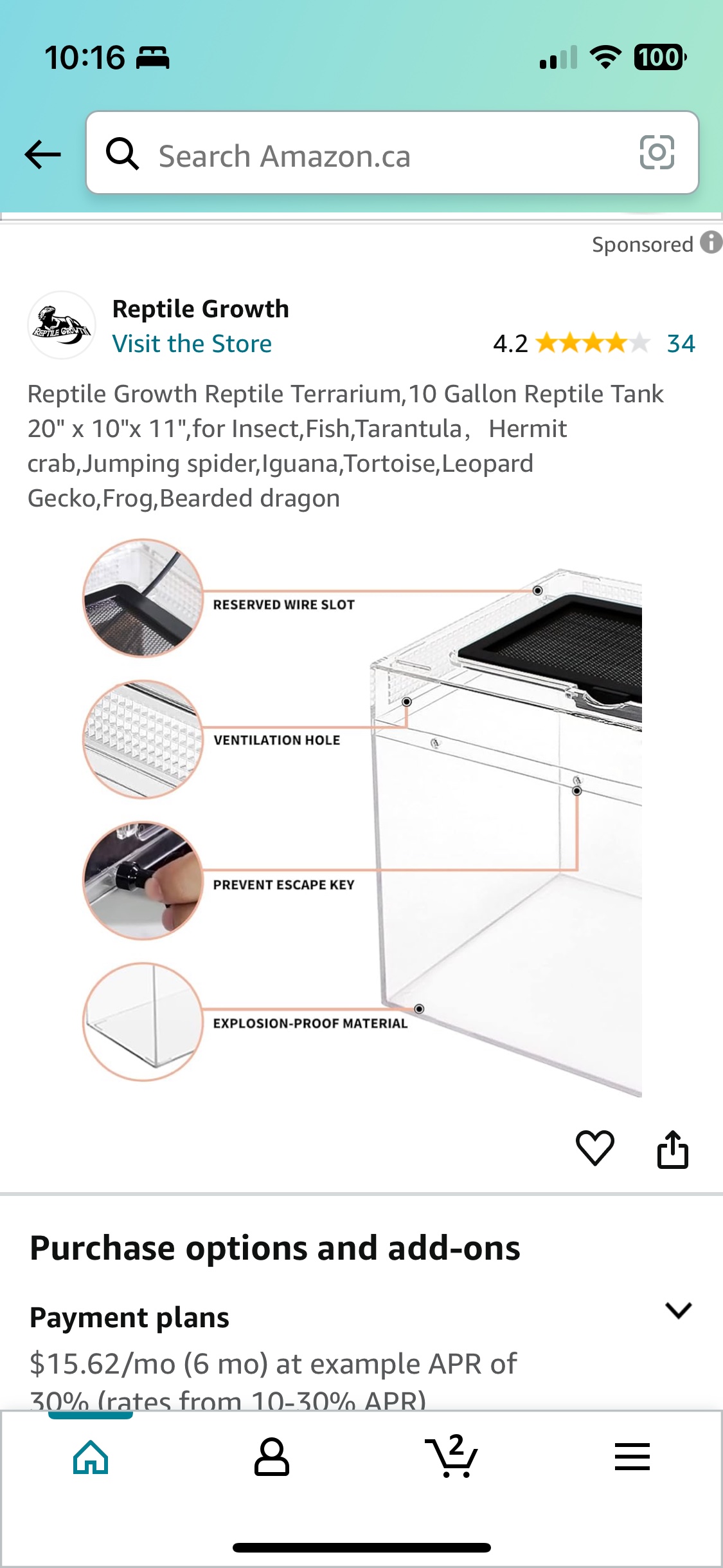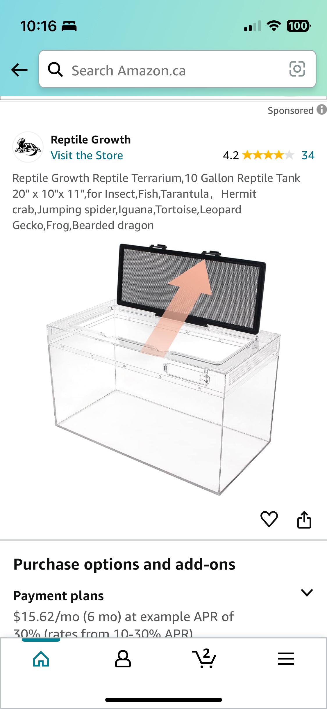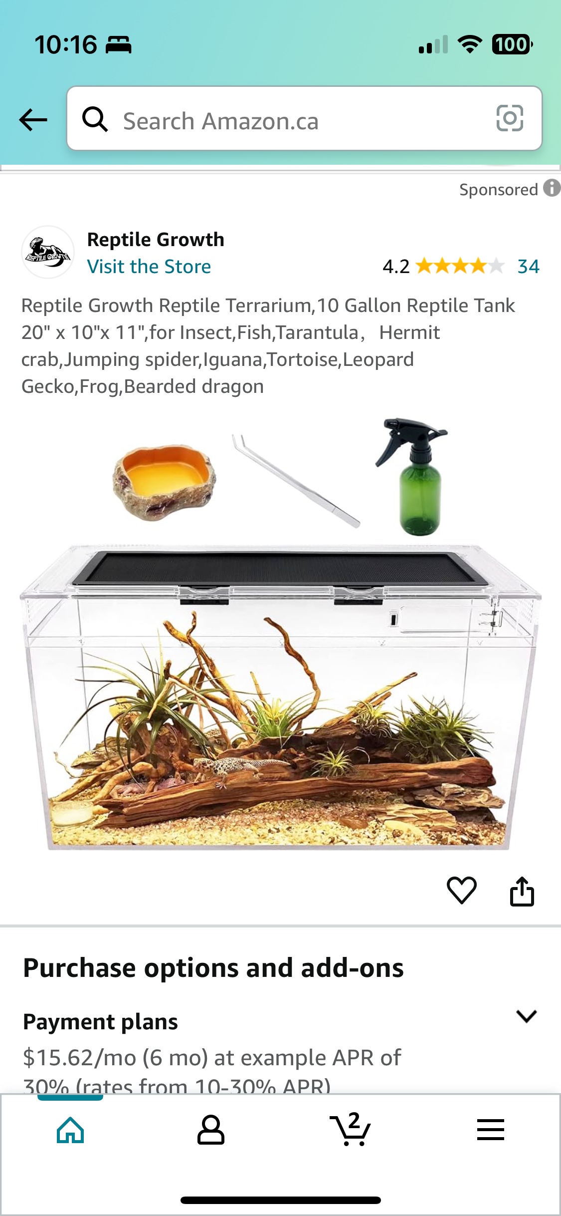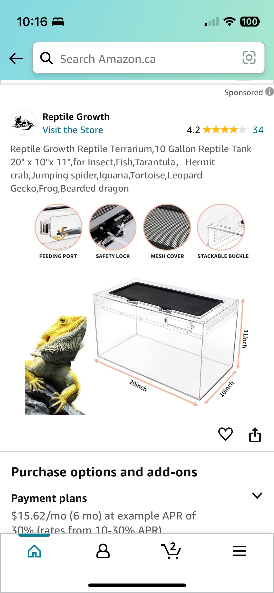 Buy & SellReptile Growth Reptile TerrariumReptile Growth Reptile Terrarium$50Reptile Growth Reptile Terrarium,10 Gallon Reptile Tank 20" x 10"x 11",for Insect,Fish,Tarantula,Hermit crab,Jumping spider,Iguana,Tortoise,Leopard Gecko,Frog,Bearded dragonWHERE TO MEETCheck LocationView MapSELLERverifiedKirtEast Credit650 reviews1 chats·1 favorites·35 views