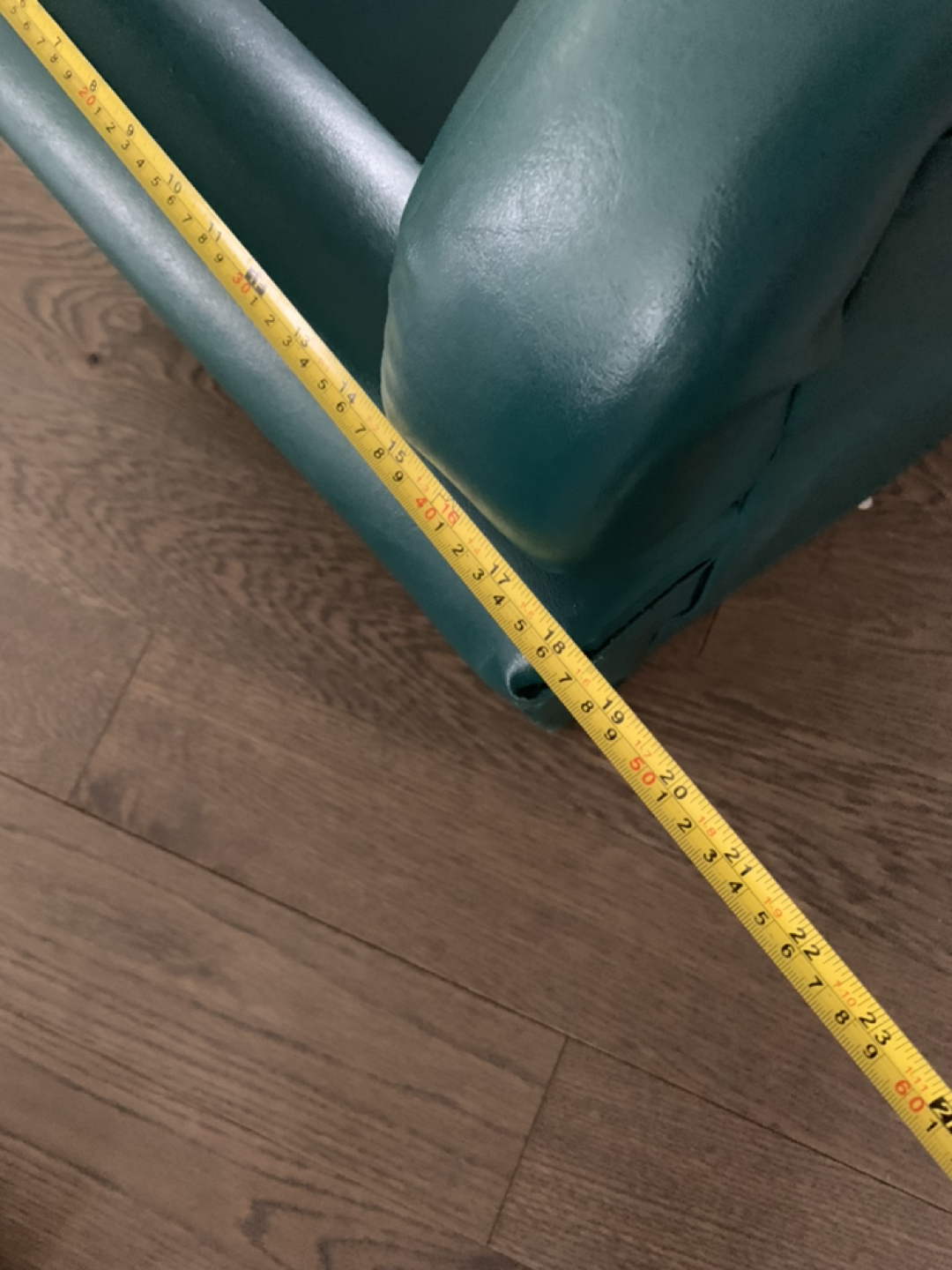 Children’s fold leather armchair forest green colour good condition somewhere on the front of arms still lots of life still in it measurements 24 inches wide 22 inches high 18 inches deep pick up Markham and Highway 7 Sfpf