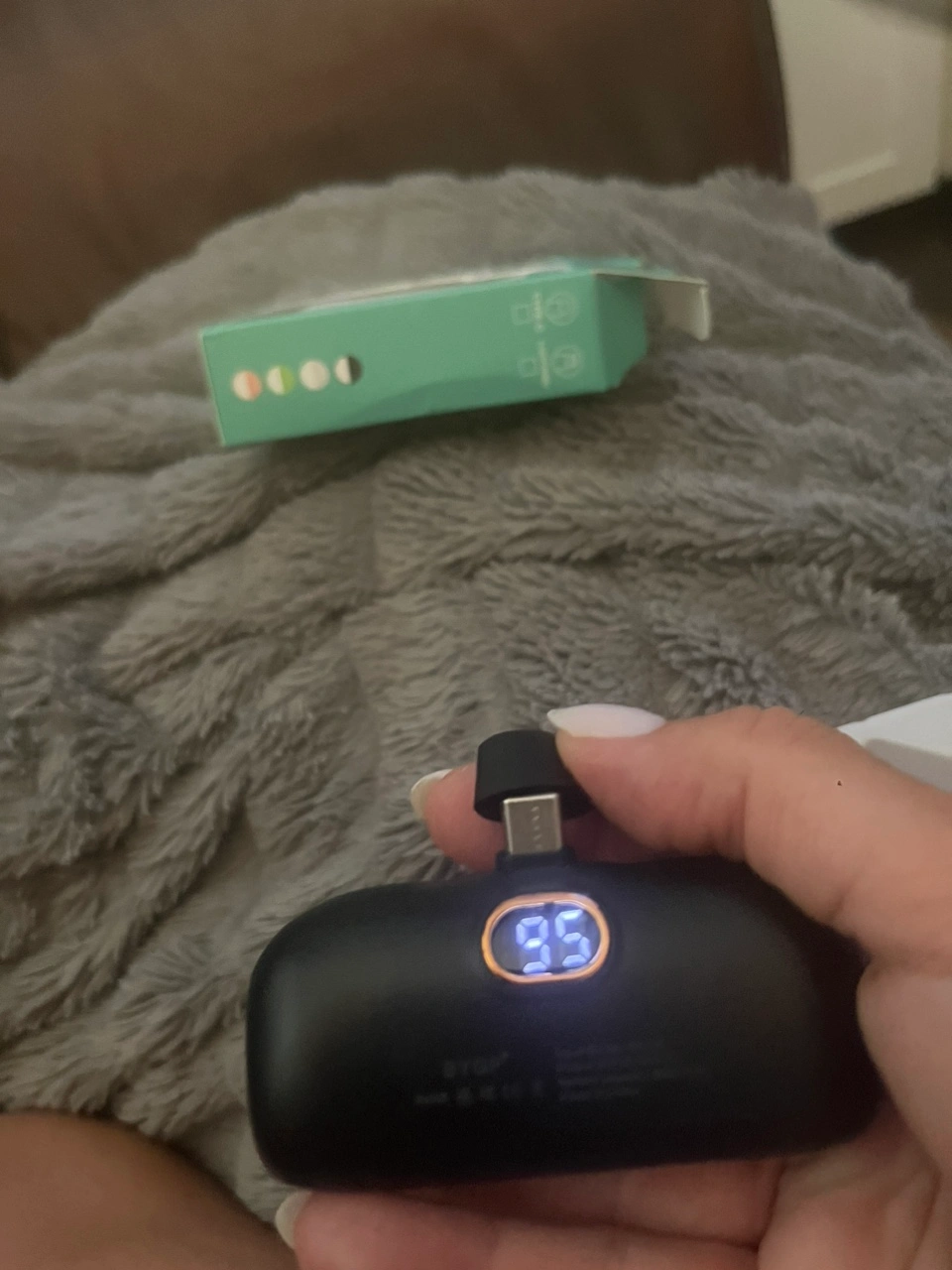 382This power bank is small, portable. It is black and has a digital display showing the percentage of charge remaining. It is compatible with type c phones iPhone 15/15 plus 15 pro/15 pro max /iPad Pro /Samsung Android etc . Switched phone no longer needed . This item is a great back up when you’re travelling!