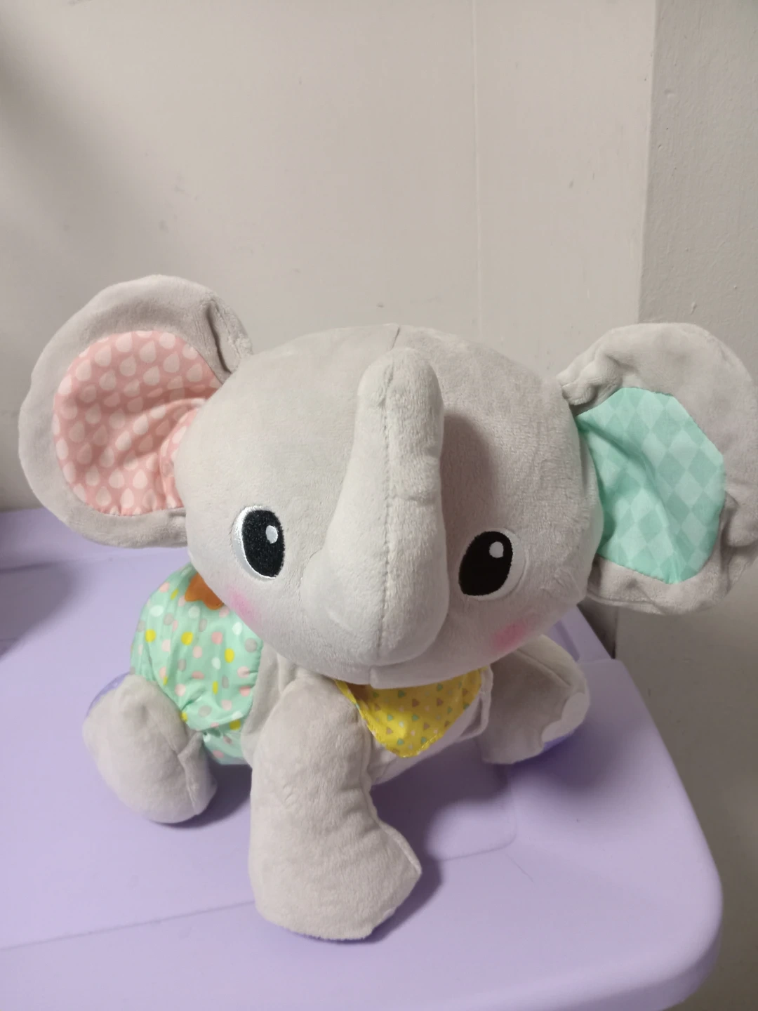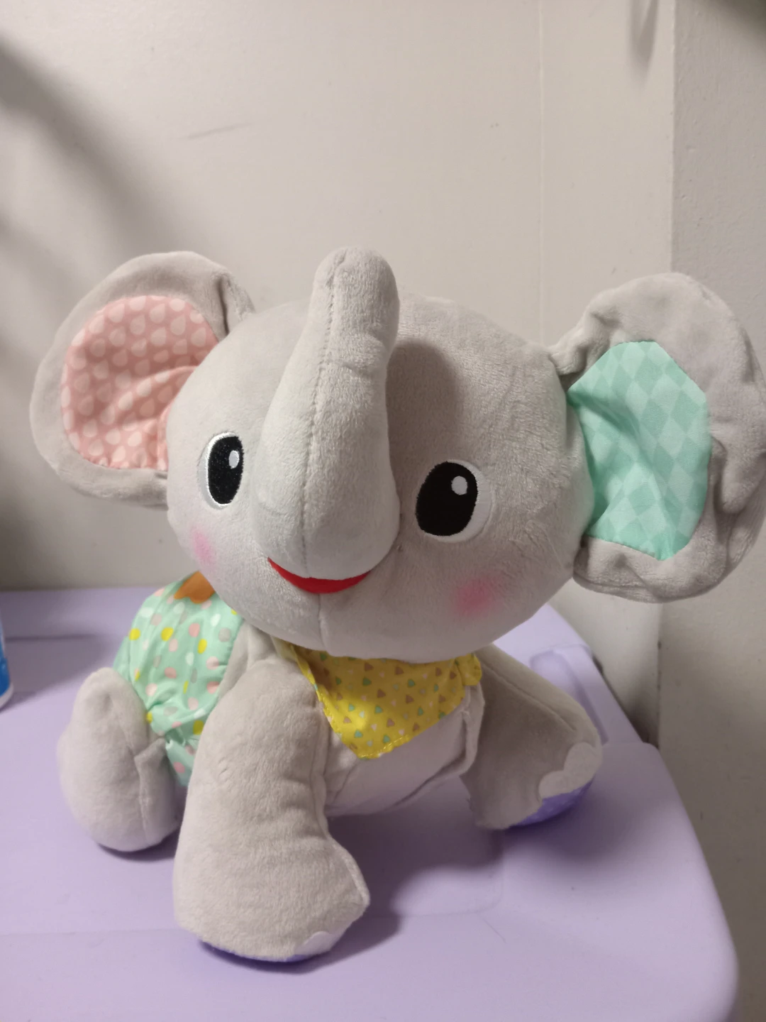 This soft plush elephant toy from Fisher-Price is cuddly and cute. It's designed for little ones to play with and explore. Great for tummy time activities or just snuggling!