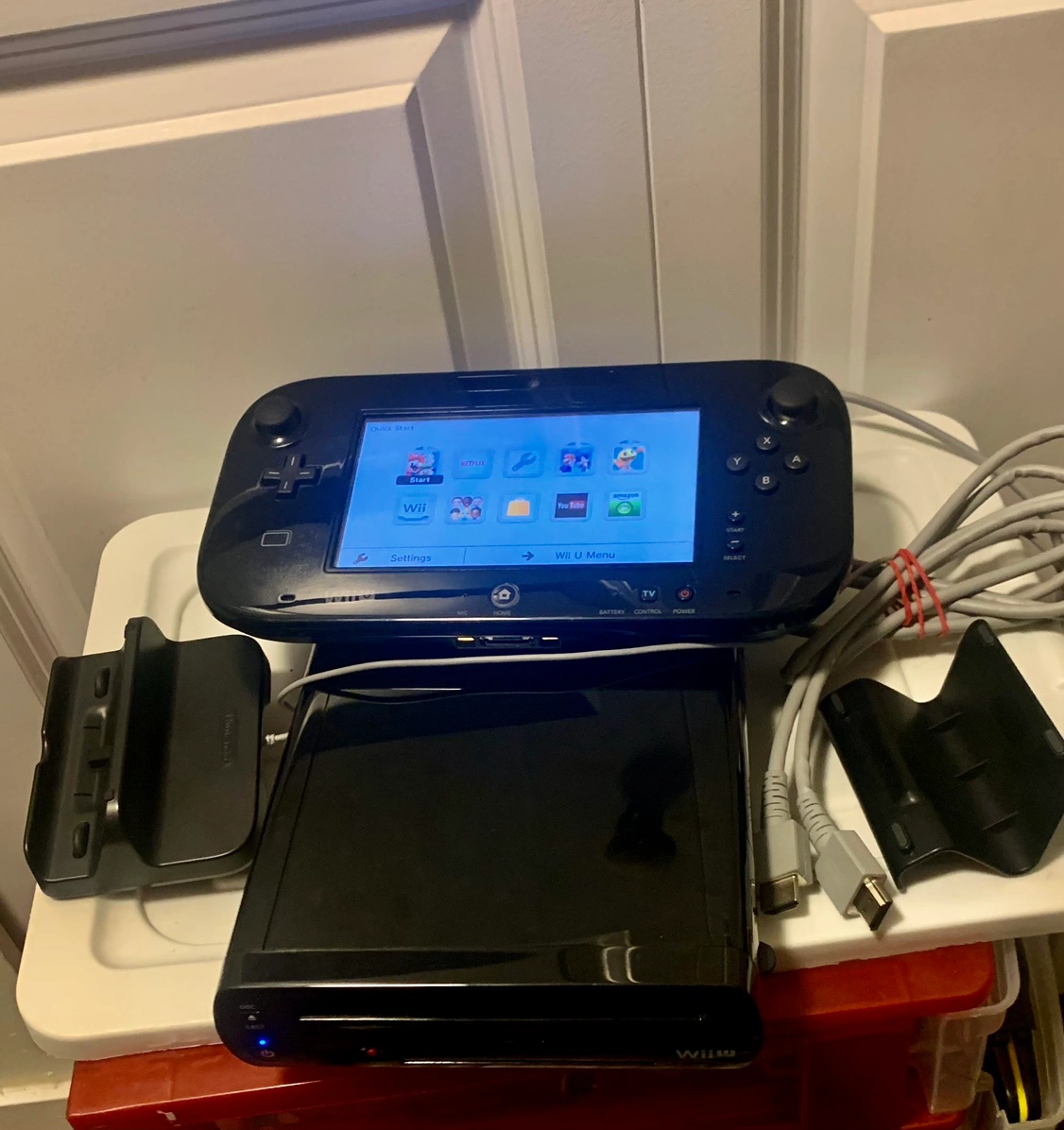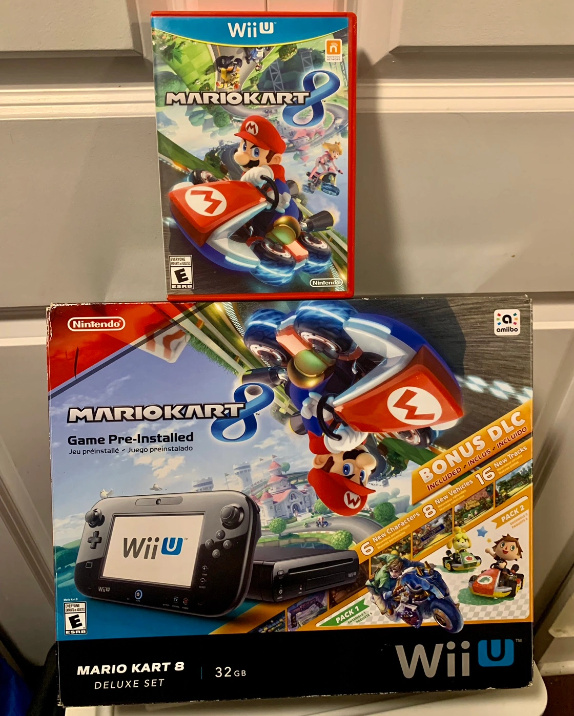 It comes complete inside original box with all the cords, Mario kart 8 game, charging dock and stand
