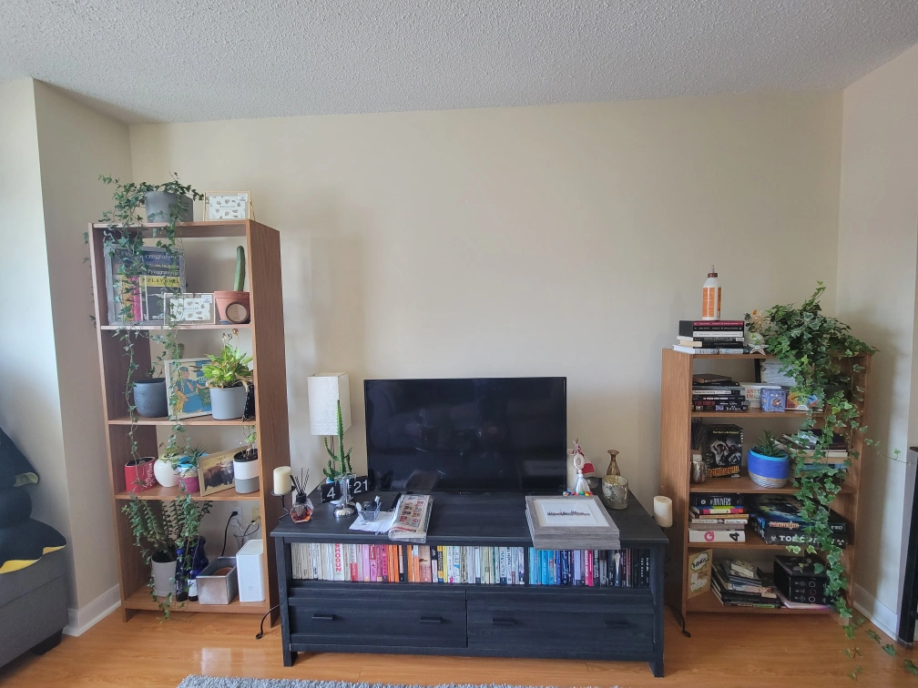 I have removed the back of the bookshelves in this photo, but still have them so can be reattached if backing desired.