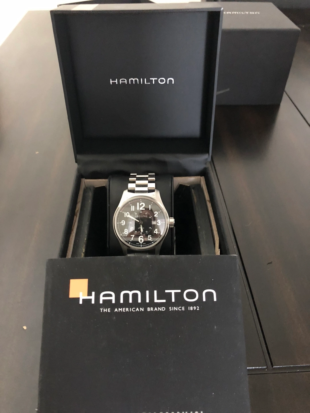 Brand new still in its original box and never worn Hamilton watch Paid $700 + tax Selling for $500.00 OBO