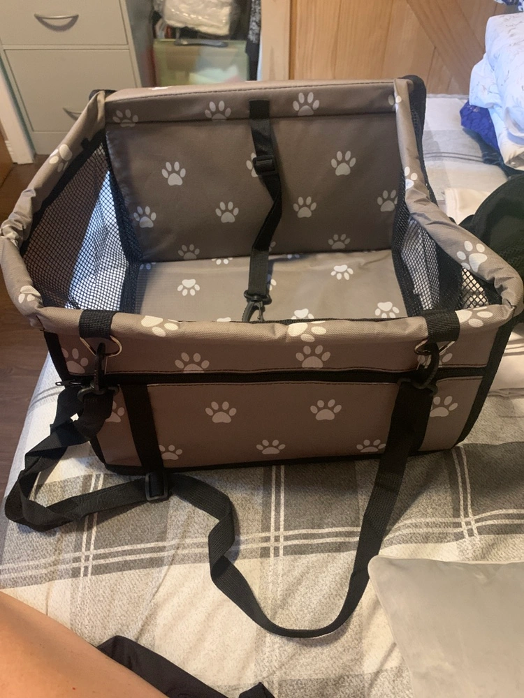 Collapsible Pet Booster Car Seat Dog Car Carrier with Safety Leash and Zipper Storage Pocket with 2 Support Bars, Portable for Small Dog