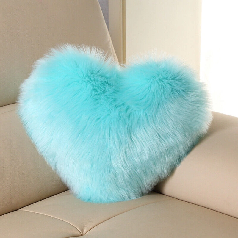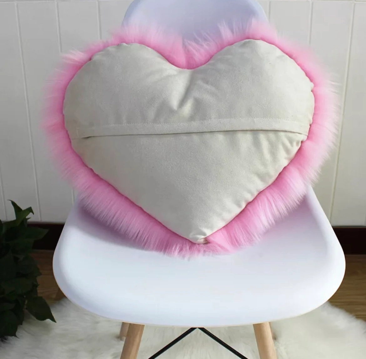 Heart Shaped Fluffy Fur Throw Pillow Case/ Cover