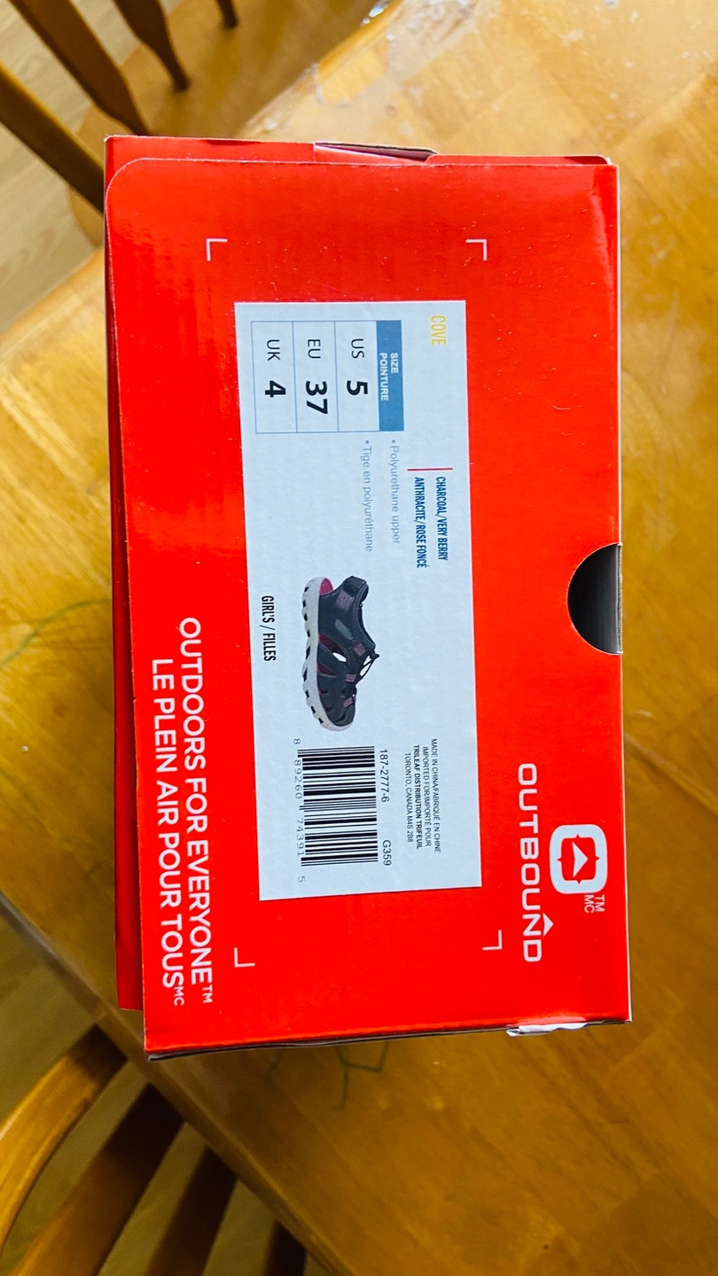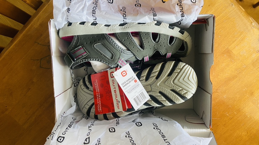 Girls' sandals in a charcoal grey colour. The sandals are in new condition and have never been worn. They have a velcro closure and are made of synthetic materials. The sandals also feature a cushioned footbed. They are perfect for warm weather and would be great for a variety of activities.