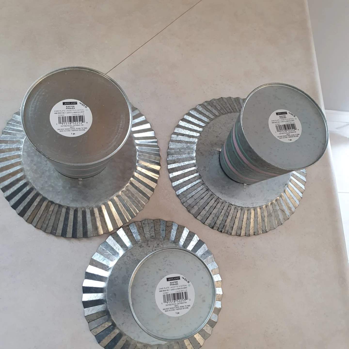 Easter Set of 3 Galvanized Metal Cake Plates