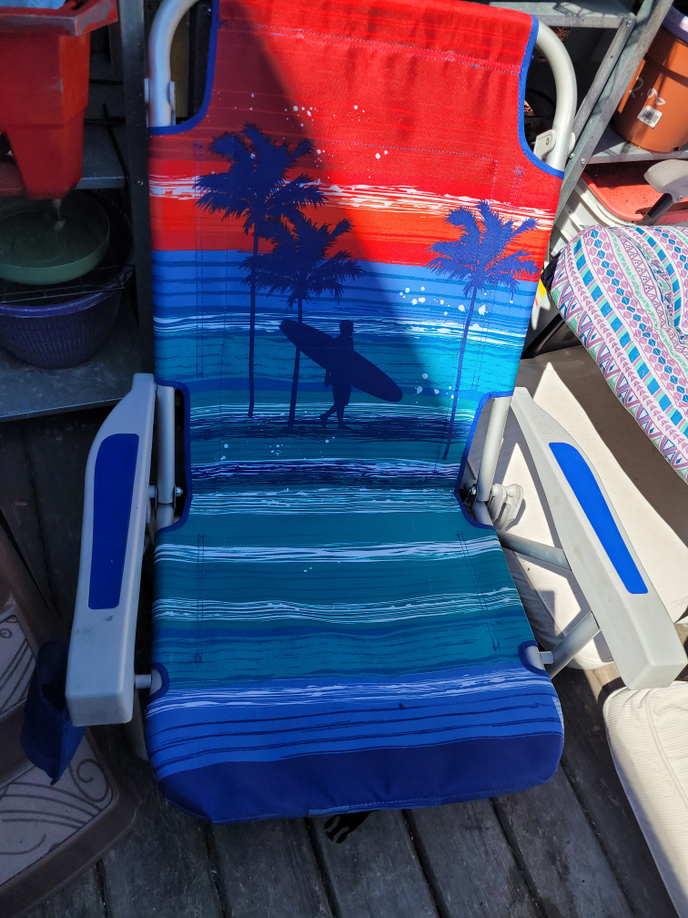 1 / 11 / 1Buy & SellFolding Beach ChairFolding Beach Chair$20A folding beach chair with a blue and red beach scene print. It features two arm rests with blue accents. The chair is in good condition.WHERE TO MEETMount PleasantView MapSELLERverifiedCharleneEast Vancouver34625 reviews0 chats·1 favorites·20 viewsSEND CHAT TO SELLERHi Charlene! I’m interested in your listing.Hi Charlene! I’m interested in your listing.Get the Karrot app to chatSign In to chat