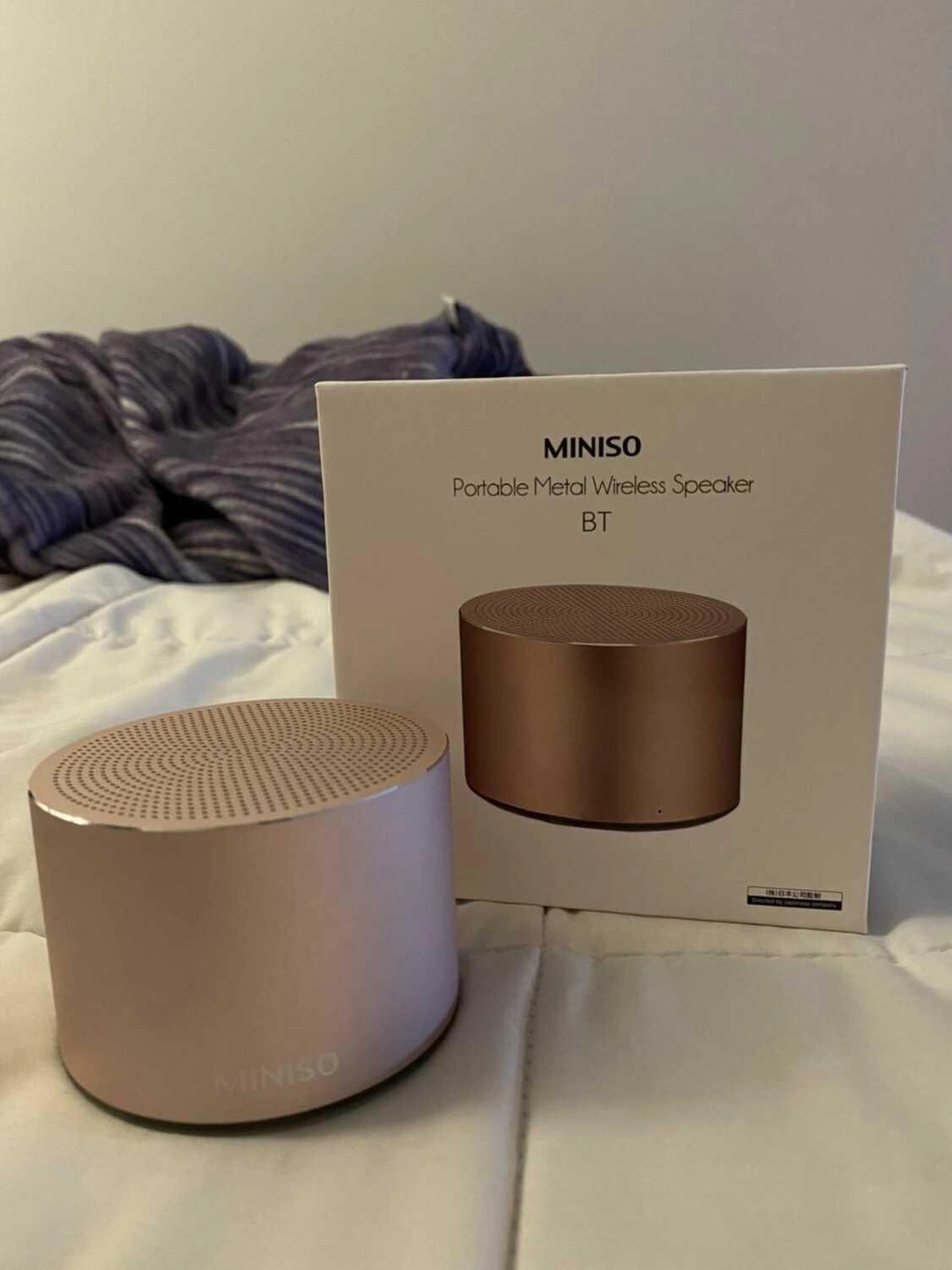 65Rose gold MiniSo portable wireless speaker in great condition. Only used twice!! Comes with box and charger cable. Very small and discreet but loud! Bought for $30.