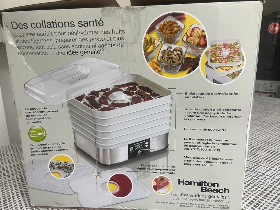 Food dehydrator, brand new. Never used. Ideal for this period to prepare your winter food storage. Only available for pickup.