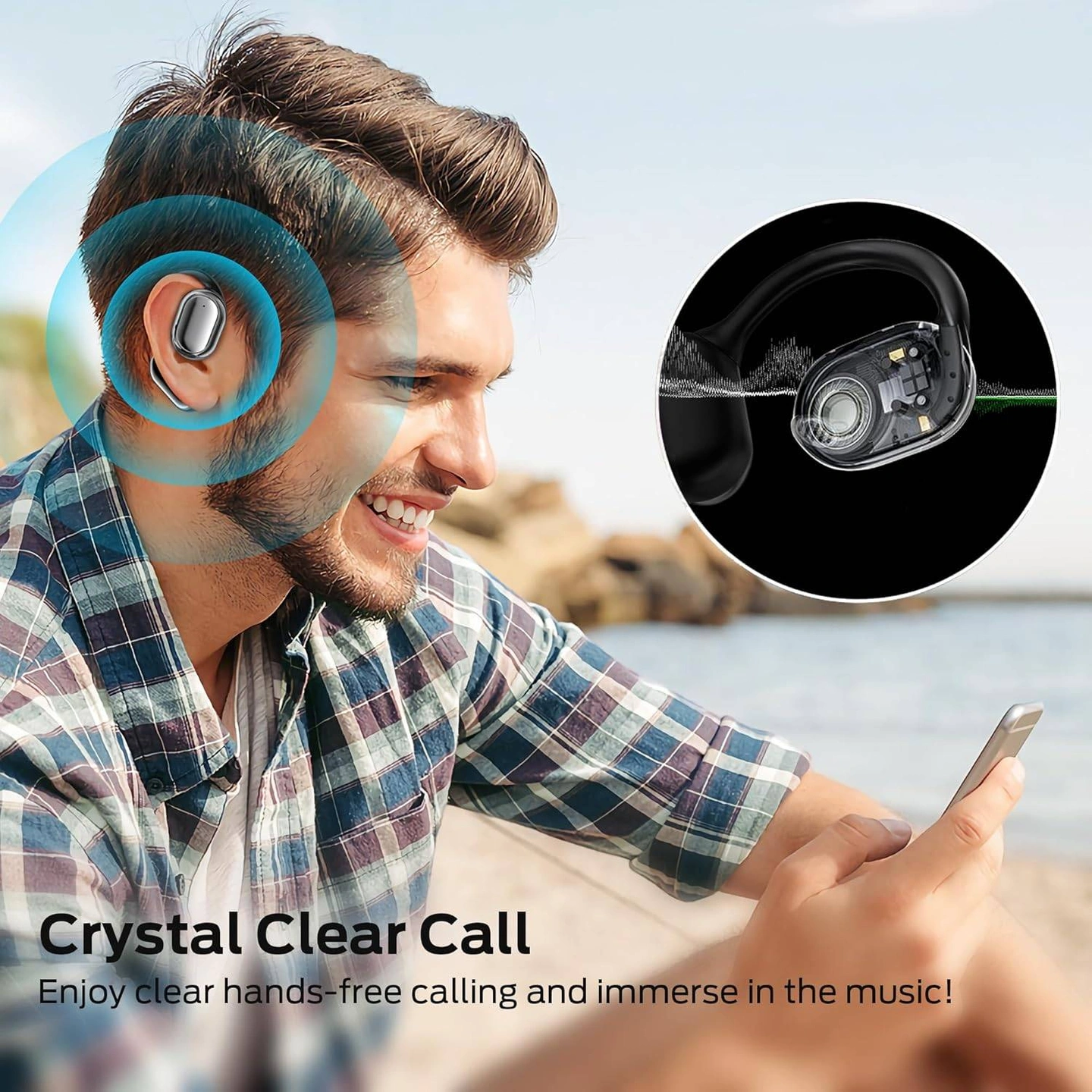 BUGANI OpenFit wearable stereo features a completely true open-ear design that earbuds can rest gently and firmly fit your ears without entering your ear canal, which will reduce stress and hearing loss after extended wear. There is no pinching of the auricle, no blockage of the ear canal, and no pain or damage to hearing. The ergonomic design with ultra-soft silicone cushion provides you with an incredibly comfortable experienc