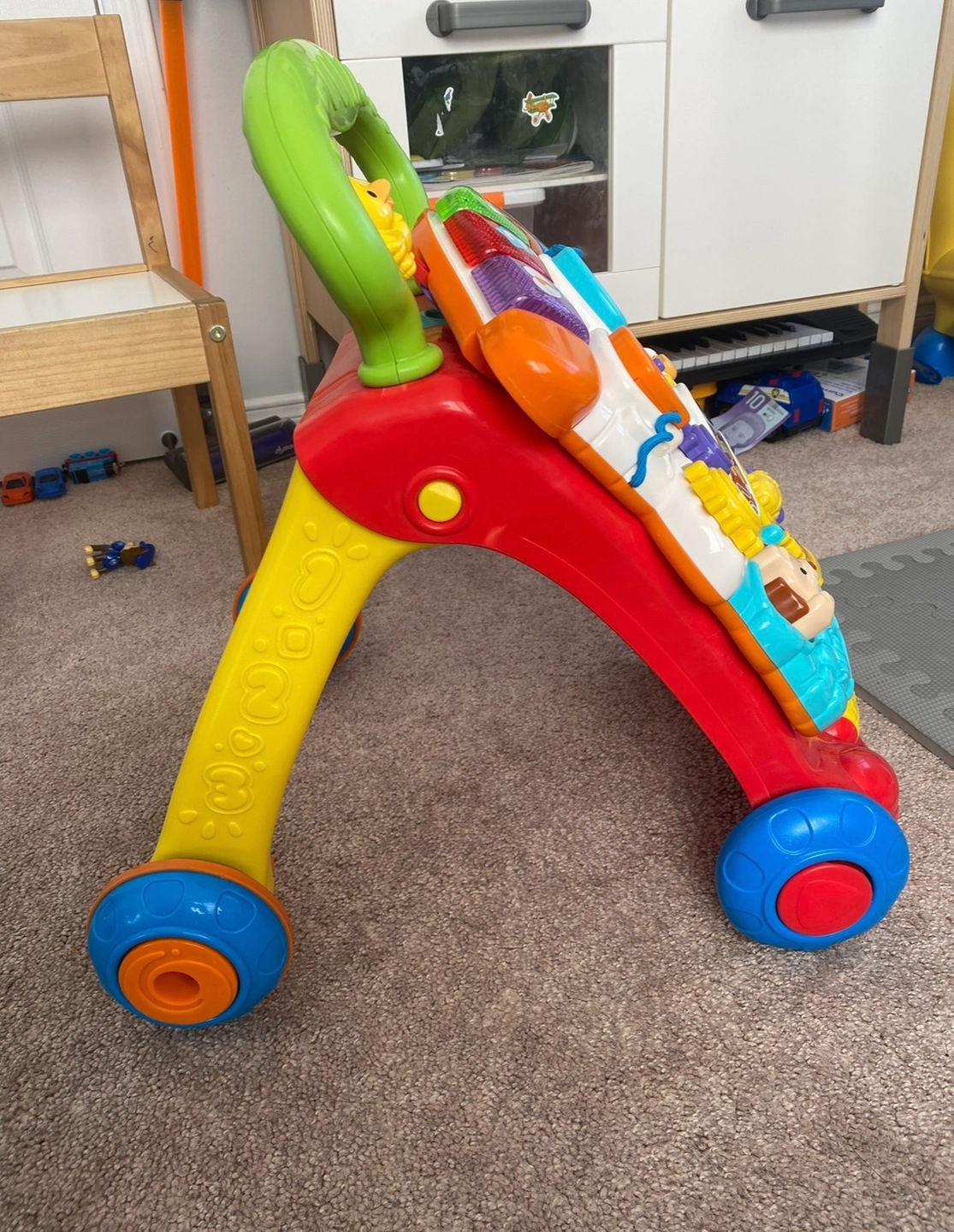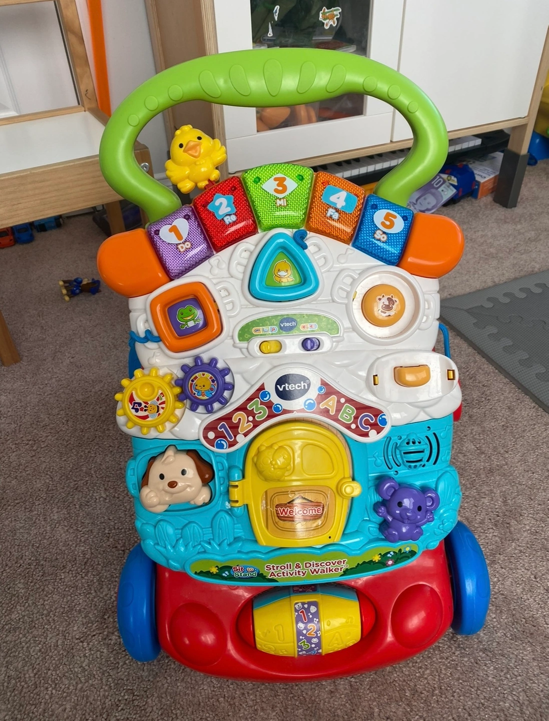 This walker is in good condition. It has lights and sounds and comes with many different activities for babies to explore!