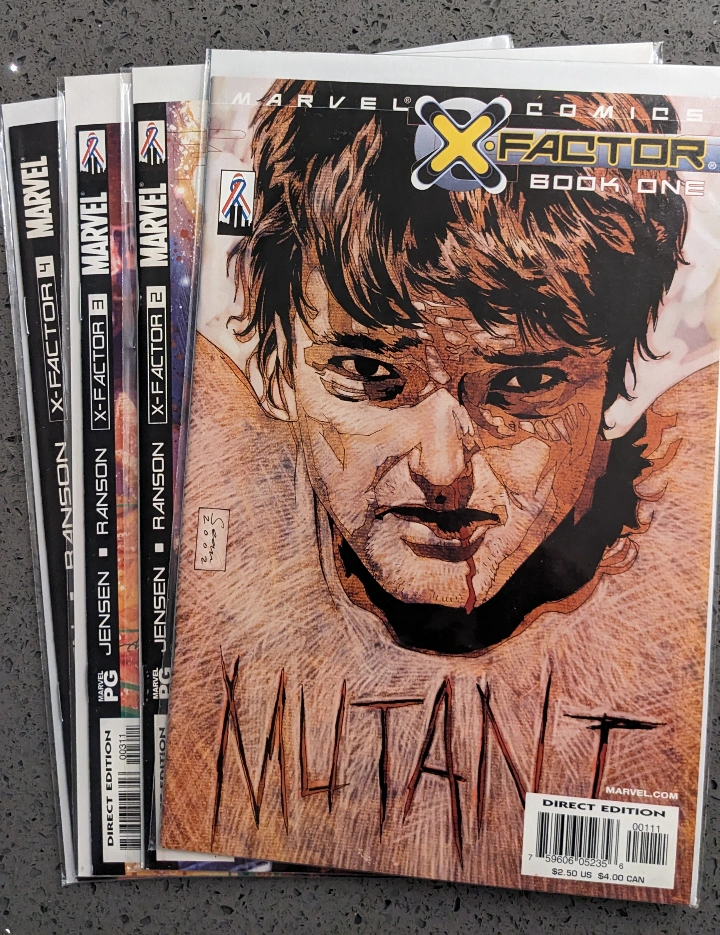 751X-Factor (2002) by Jenson Issues #1-4 "COVER BY ARTHUR RANSON. JEFF JENSON (W). ARTHUR RANSON (P). THE SCOOP: Entertainment Weekly head writer Jeff Jenson makes his comics debut at Marvel – with a top-secret X-book! THE STORY: You’ve seen mutants beaten, hanged and crucified. When will it end? You may have heard the name before, but nothing can prepare you for X-FACTOR!"