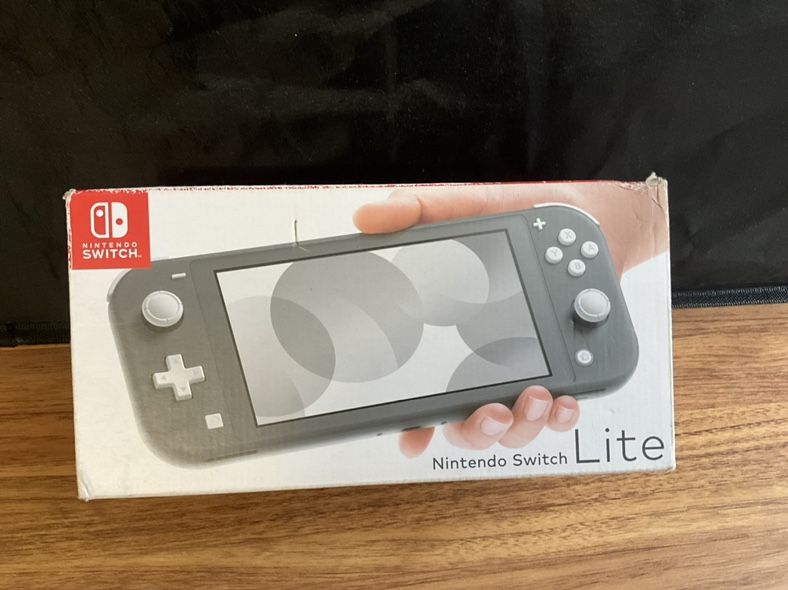 Grey Nintendo Switch Lite console. Comes in original box. The console is not used, and is completely brand new. The box has wear and tear. It does come with a charger. There are no other accessories included. Please message me with any questions.