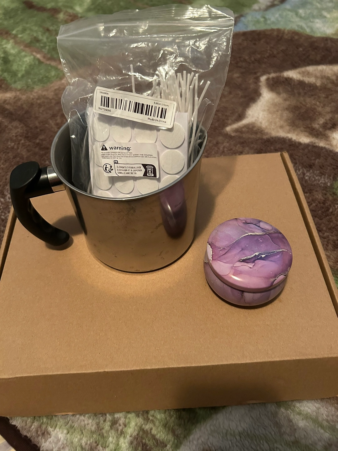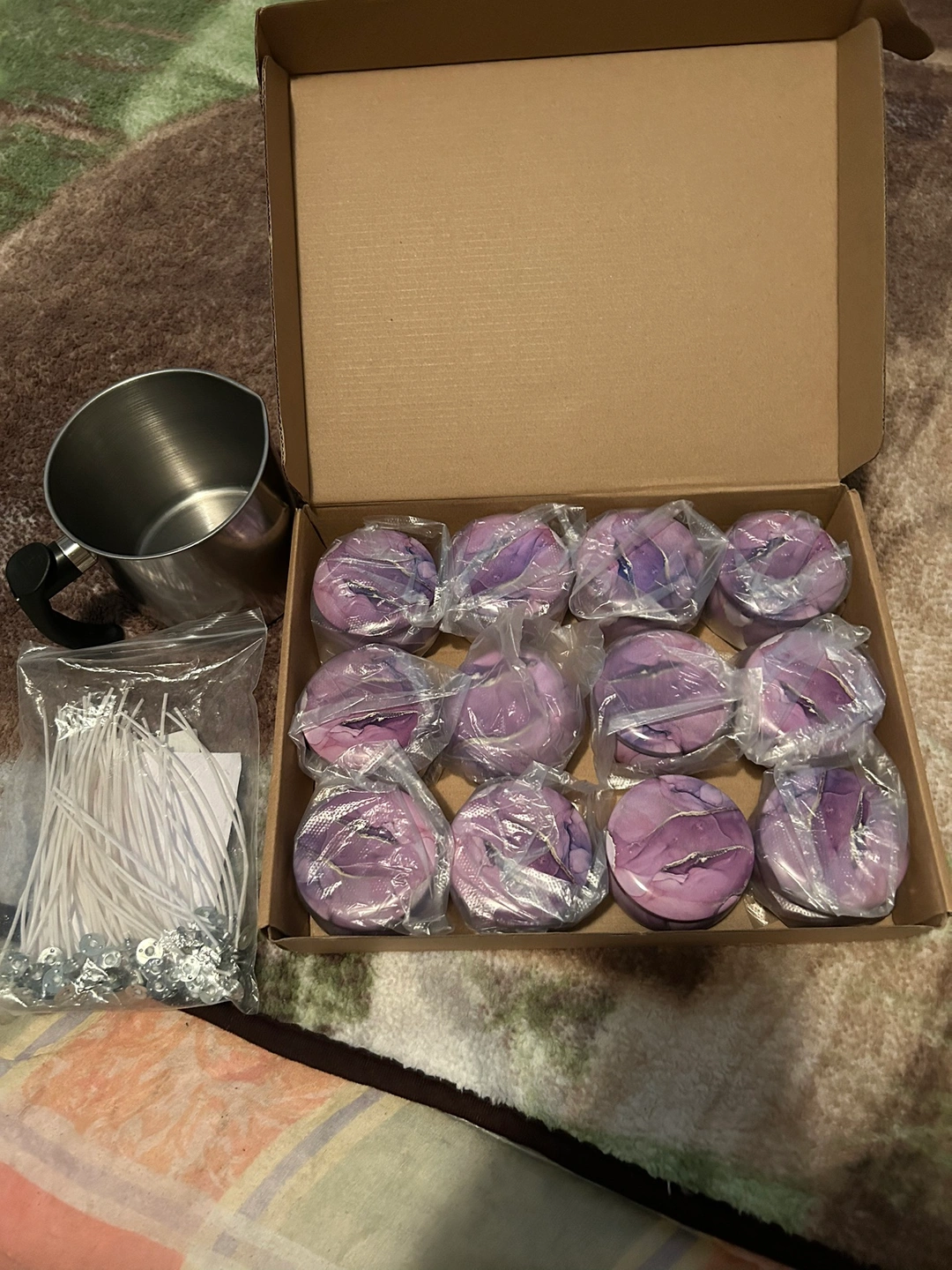 Downsizing my candle making supplies. The purple containers are 4 ounces (there’s 12 containers in total) and the wicks are 5.9 inches long (15 centimetres). $20//pickup southeast Vancouver.