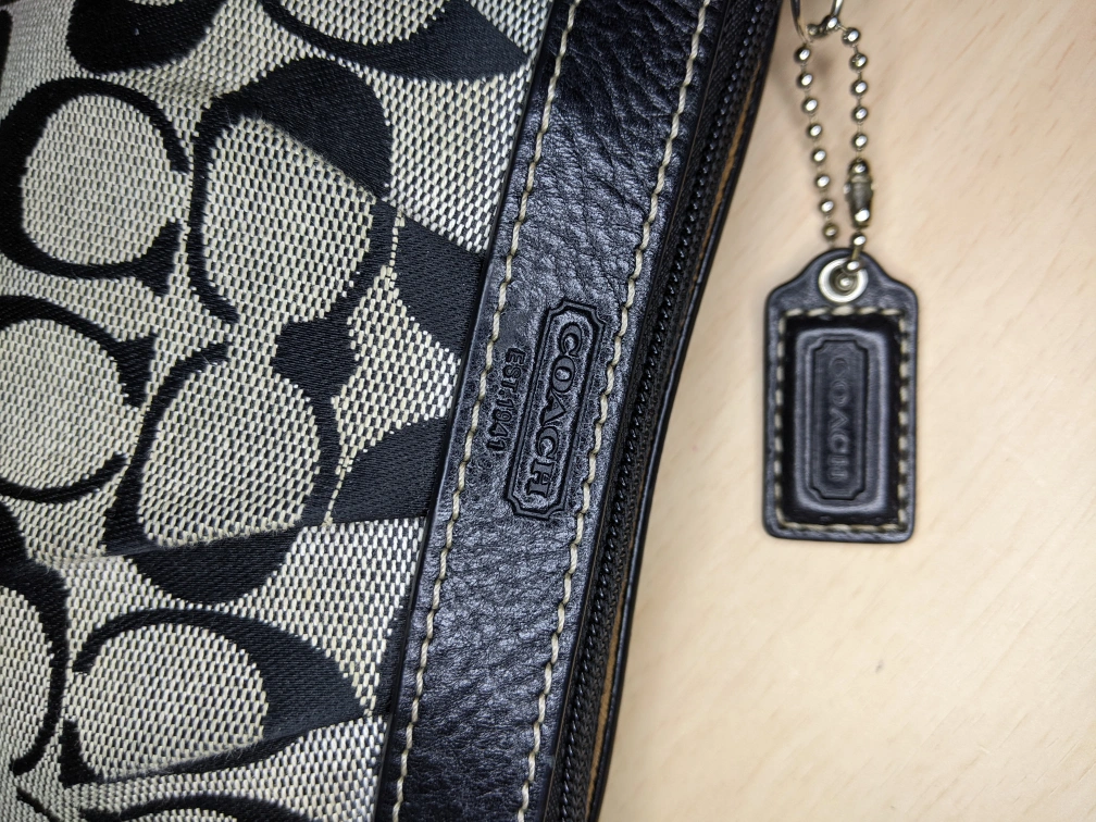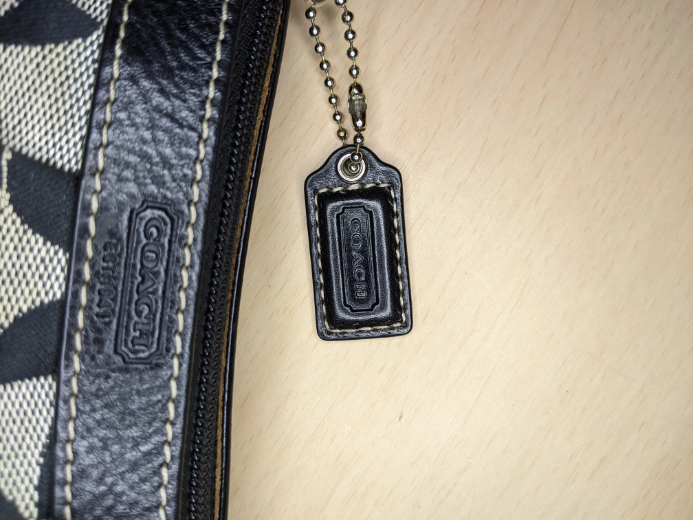 COACH Signature C Corner Zip Pleated Leather Grey Sateen