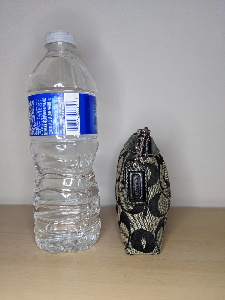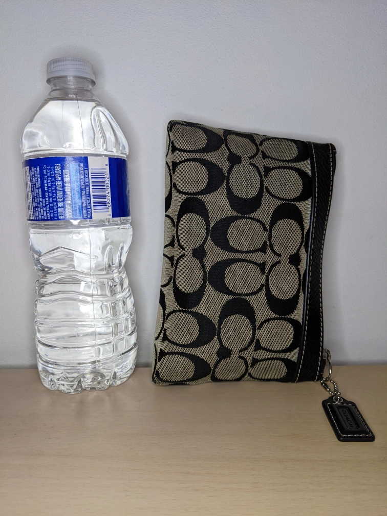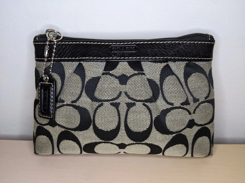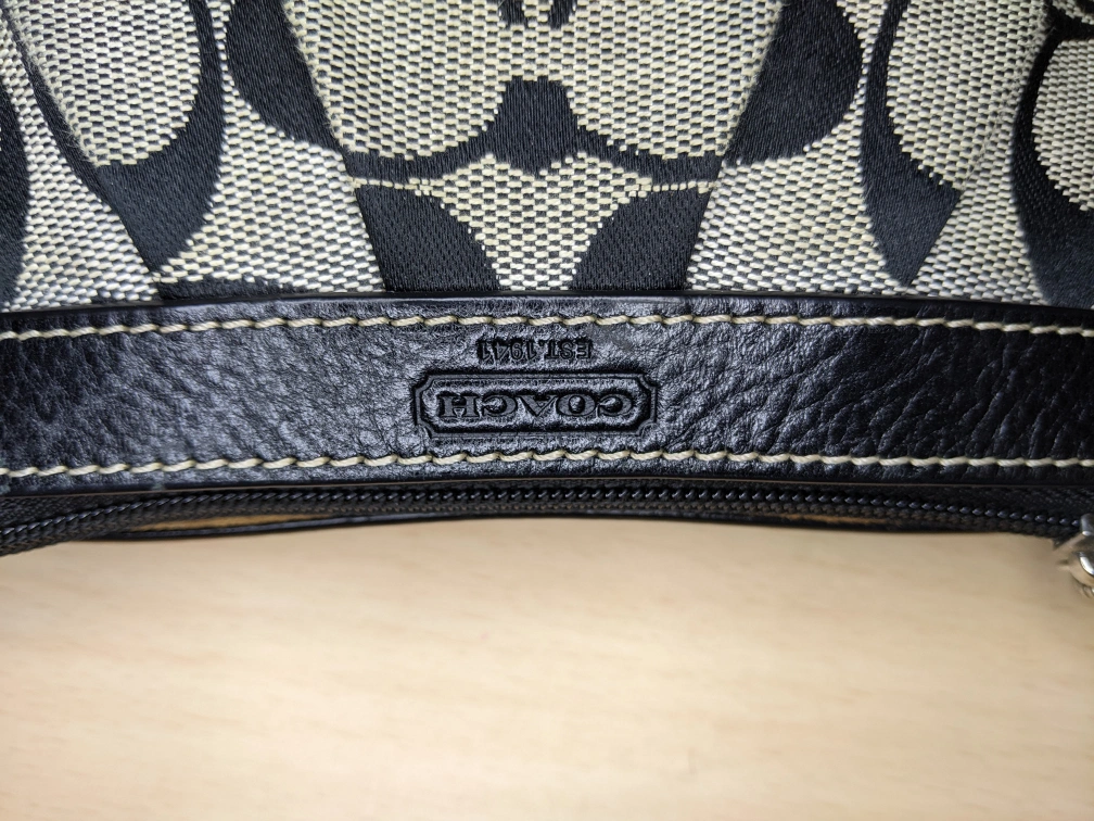 COACH Signature C Corner Zip Pleated Leather Wristlet Grey Sateen