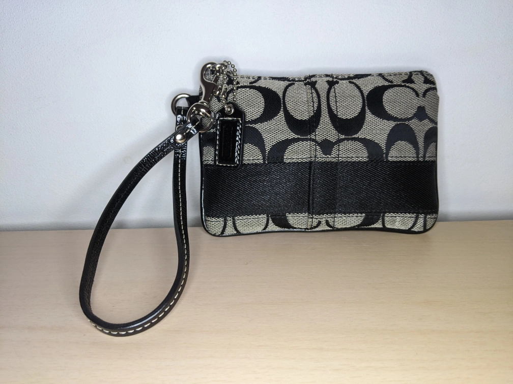 Coach Classic Signature Monogram Wristlet Black Coin Purse
