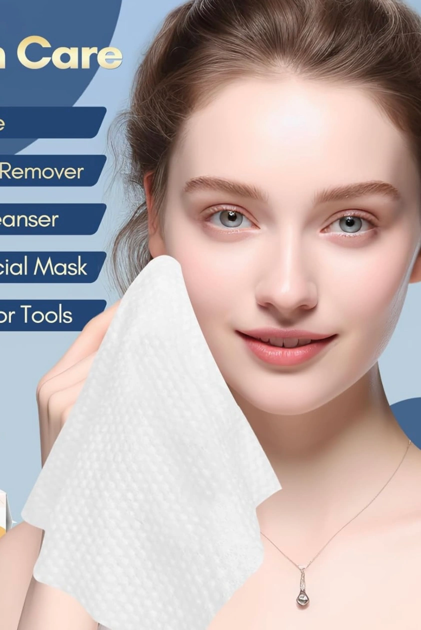 152100% Cotton Tissue Dry Wipes - Extra Thick Biodegradable Facial Cleansing Towel Disposable Wash Cloth for Makeup Cleaning