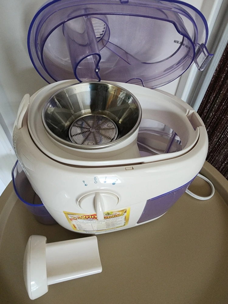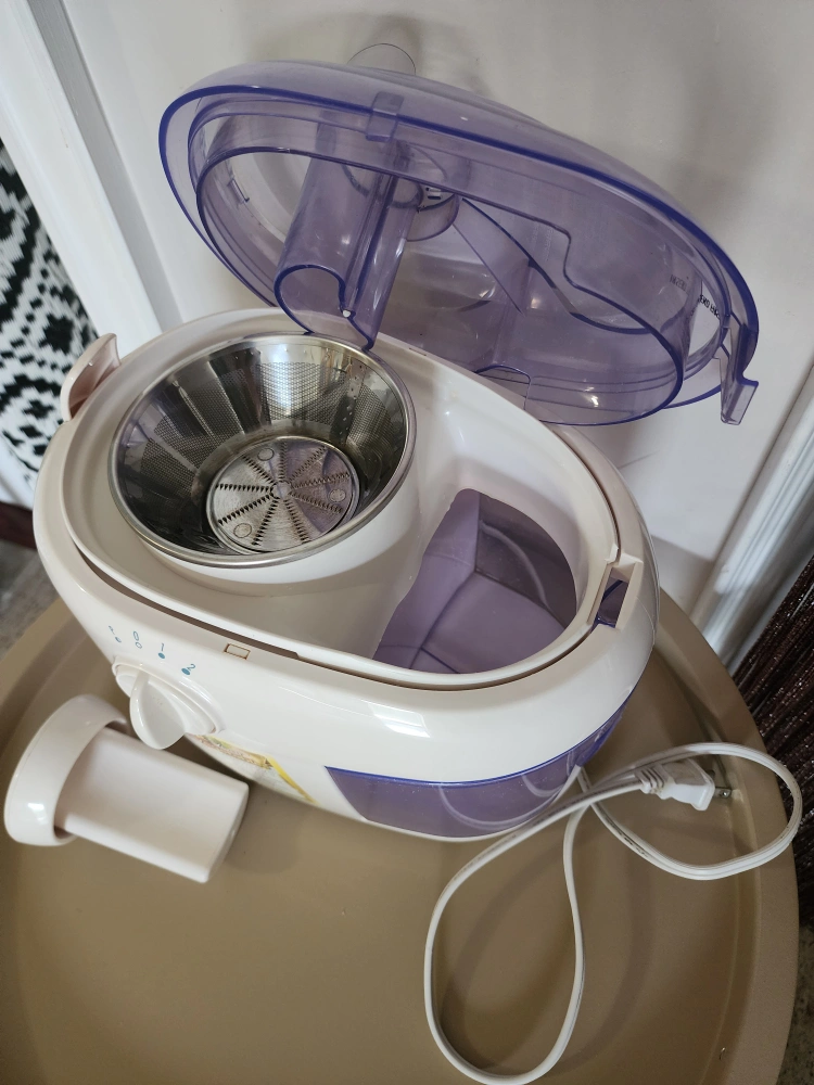 Hamilton Beach Electric juicer in white. it's a complete set that includes a pulp container and a juice cup. it's not used much, is in good condition, and works efficiently. Delivery is not available. it can be picked up from the mentioned address.