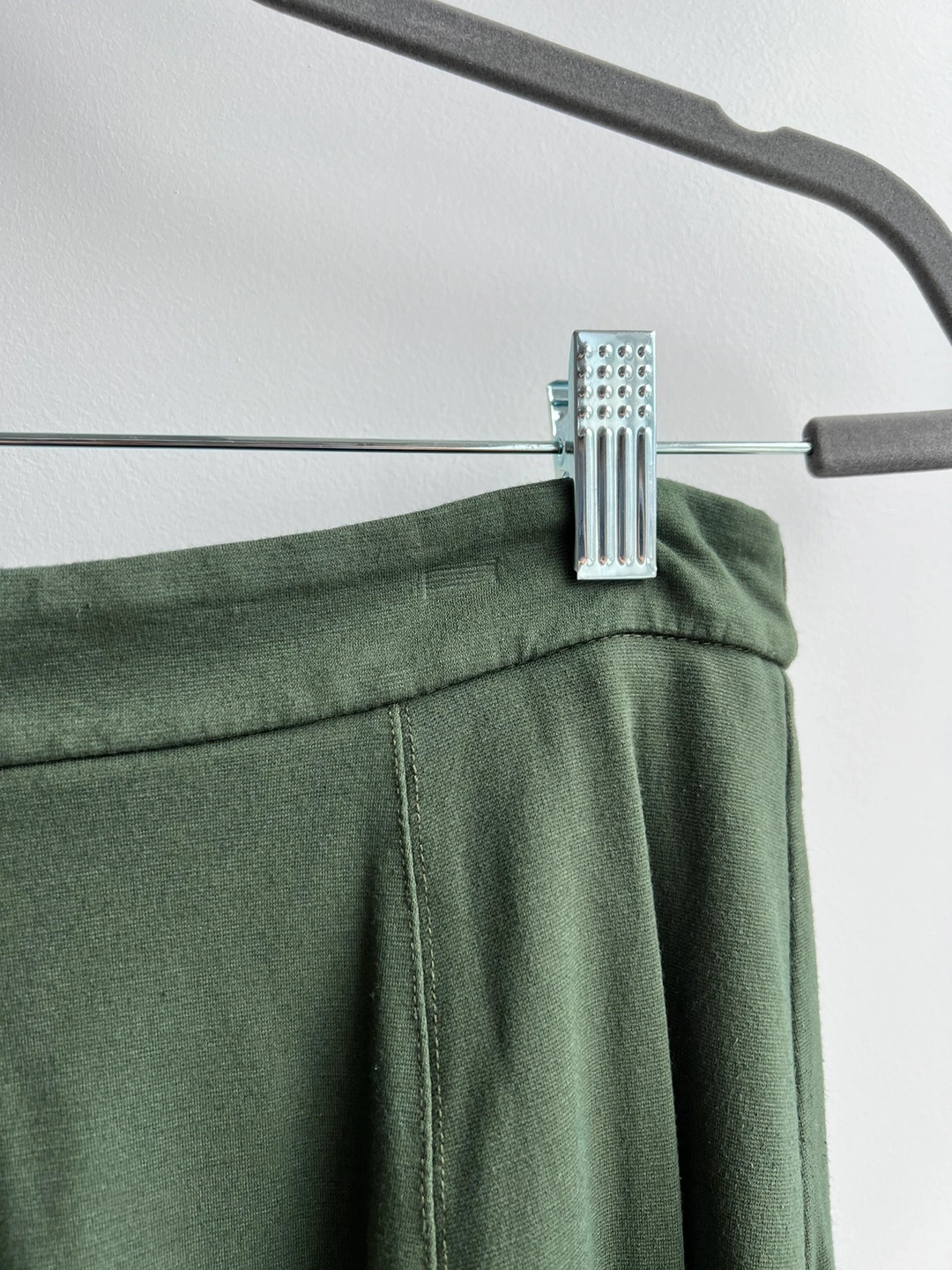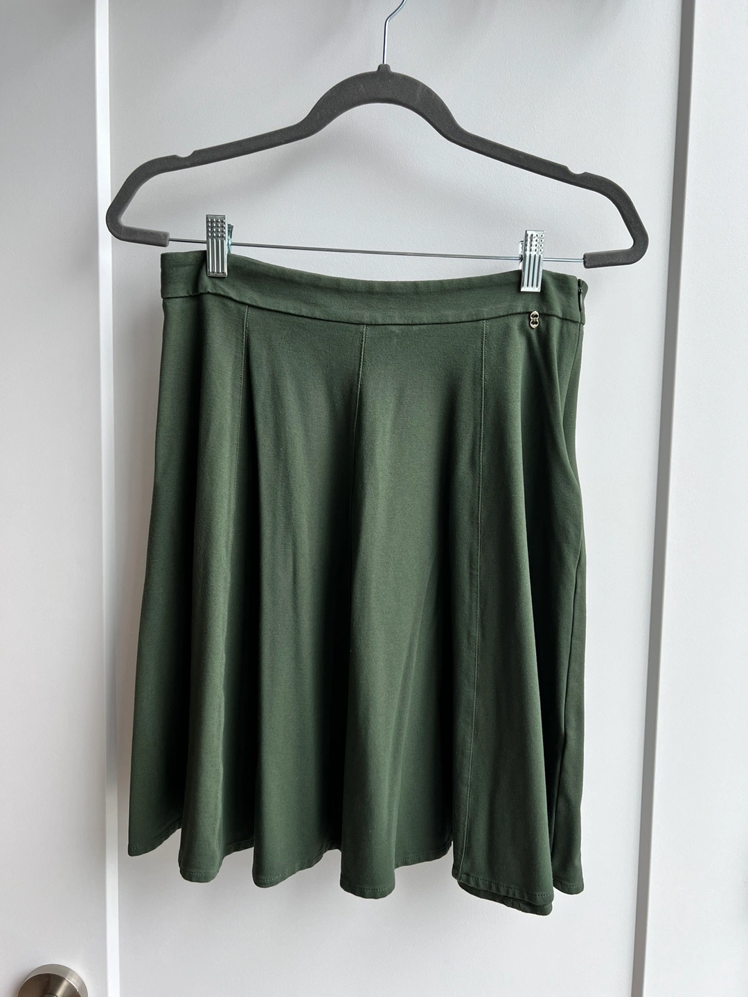 Size 8/10, worn a few times. The waistband has markings from the clip hangers, but it’s not damaged.