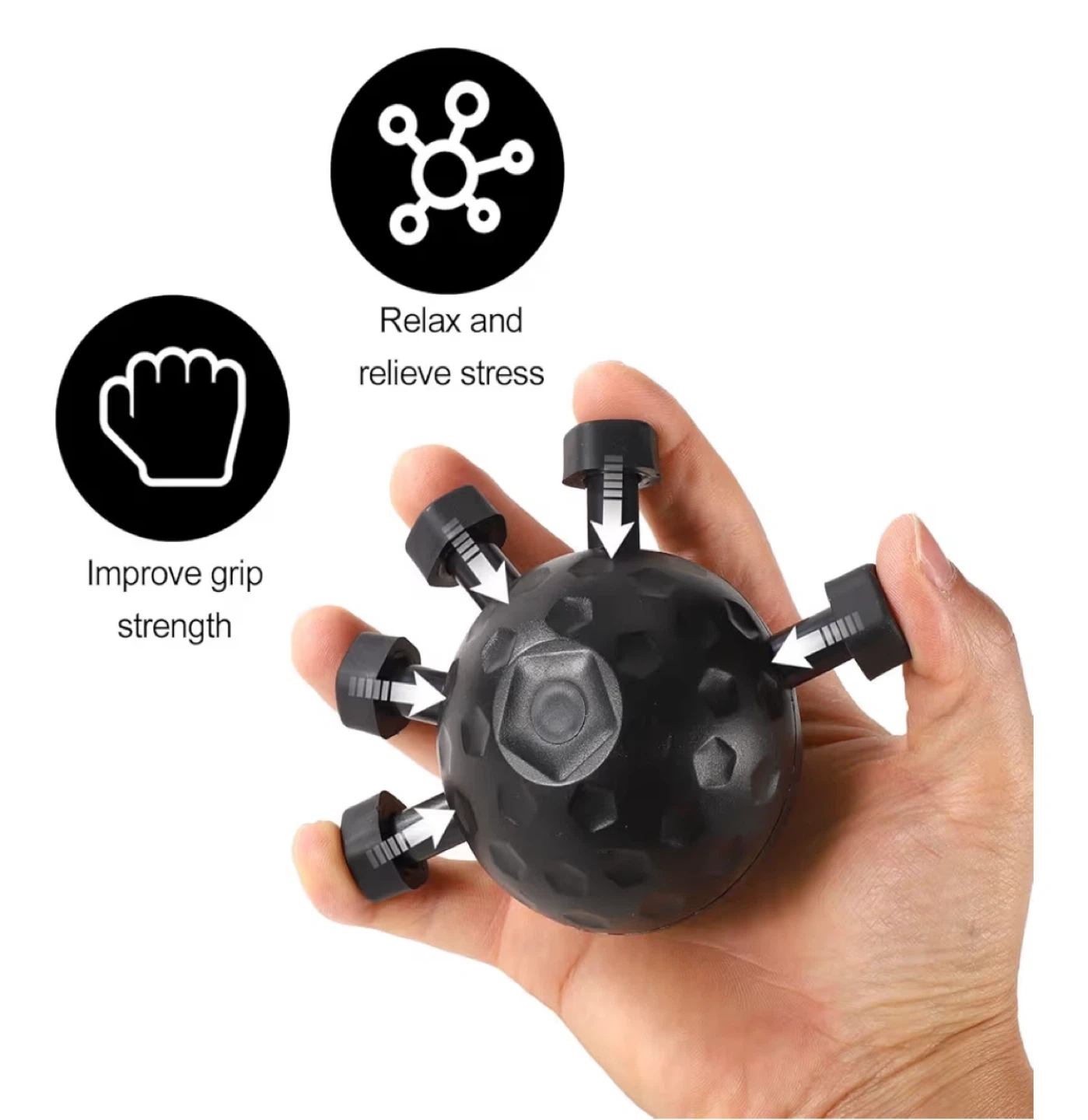 This black ball is designed to improve grip strength and relieve stress. It has an elastic range of 20-45kg and is soft and resilient. It's useful for people who type, play piano, or do detailed work.