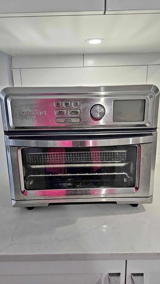 This premium 1800 watt toaster oven and AirFryer has endless functions including AirFry, bake, broil, toast, bagel, pizza, roast, dehydrate, proof, low, dual cook, reheat, and warm with a wide temperature range (Warm-450°F). It's large enough to airfry up to 3-pounds, toast 6 bagel halves, roast a 4-pound chicken, or bake a 12-inch pizza. It has a .6-cubic feet interior with a large viewing window and interior light. It is equipped with a low-temperature setting for slow cooking and braising, plus dedicated functions for dehydrating and proofing. The fan and heater deliver high-velocity, high-heat airflow for perfectly fried results with minimal noise. Includes an oven light, oven rack, dishwasher-safe baking pan, and AirFry basket. The nonstick interior makes cleanup simple.