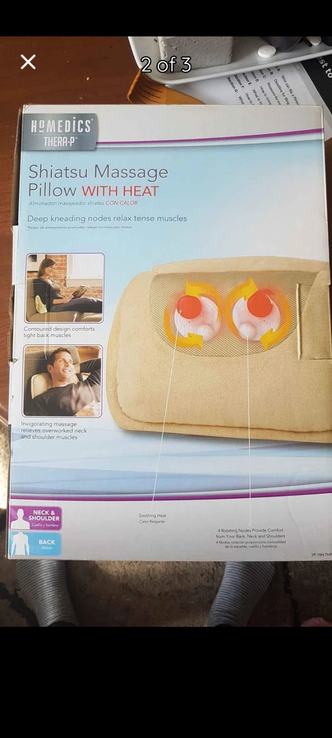 Get ready to relax with this HoMedics Shiatsu Massage Pillow with Heat! It features deep kneading nodes to help relax tense muscles. The contoured design is made to comfortably fit back muscles, and the invigorating massage helps relieve overworked neck and shoulder muscles. It also has soothing heat!