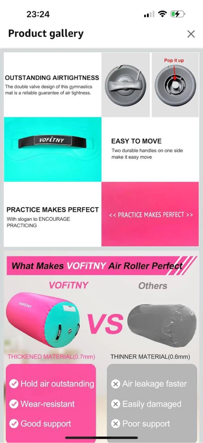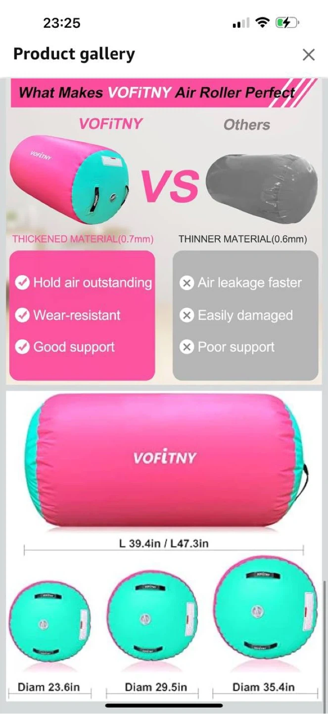 🤸♀️ VOFiTNY Air Roller Gymnastics Barrel 3.3’ x 2’ – Pink/Mint – NEW (No Box) 🤸♀️
