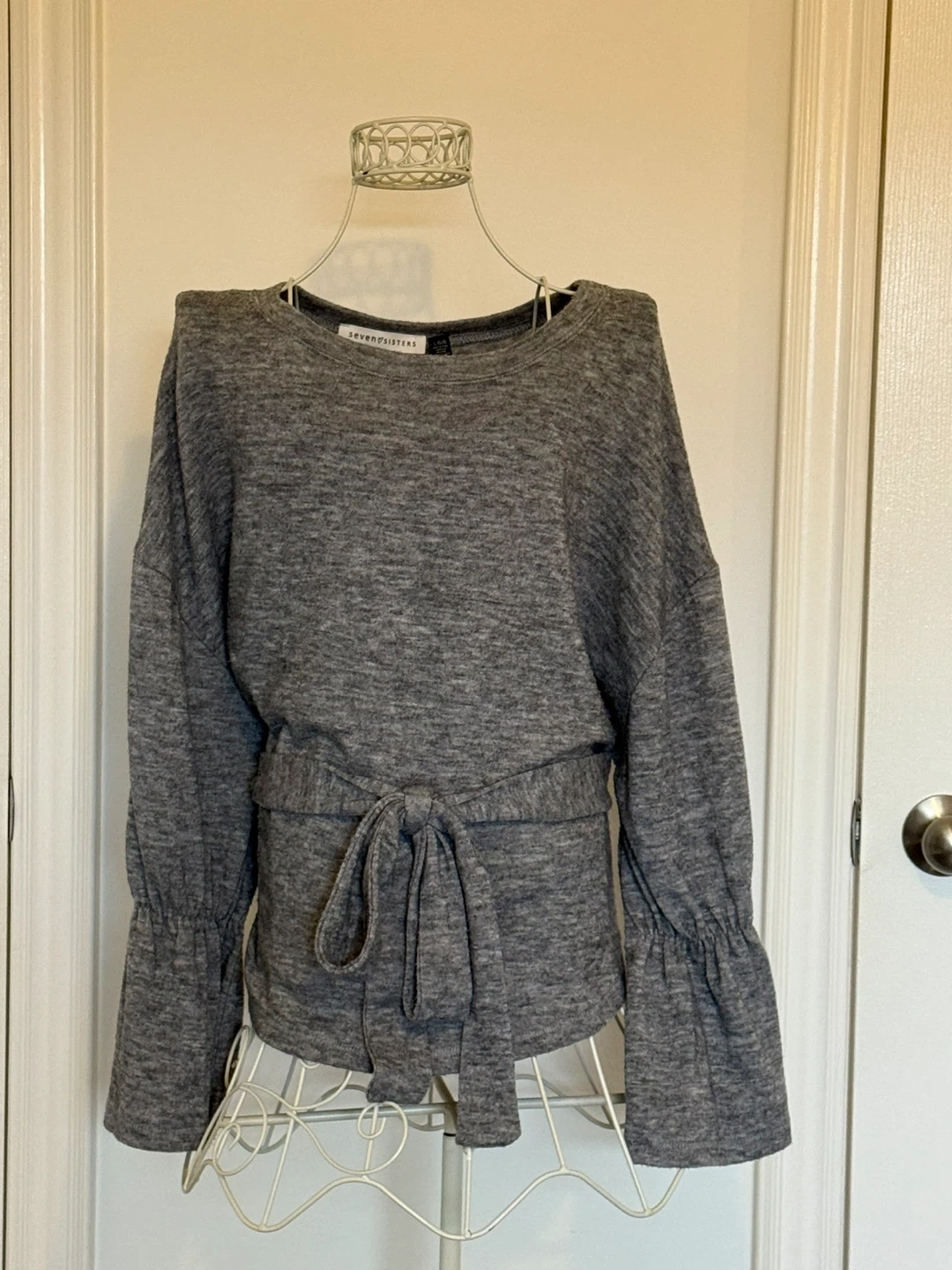 A cute soft and comfy Seven Sisters top! It's a lovely grey colour and features a flattering tie-waist design, and flowy sleeves. Size is large and in great condition!