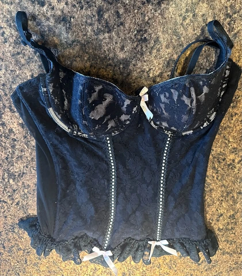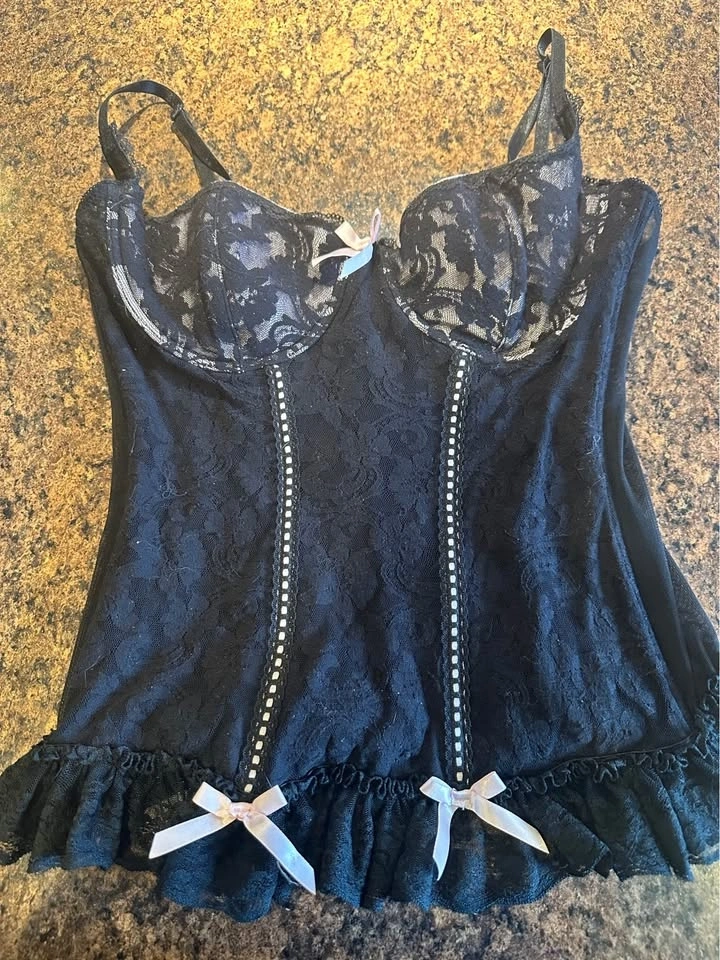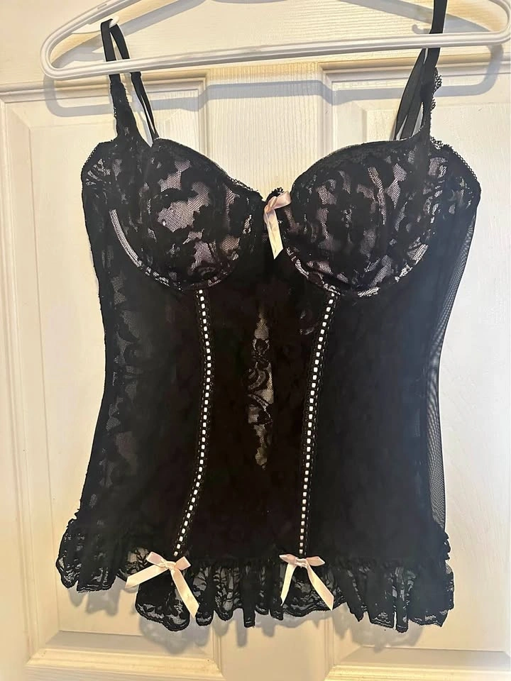 Frederick's of Hollywood black lace bustier, reminiscent of their vintage 1980s and 90s designs.