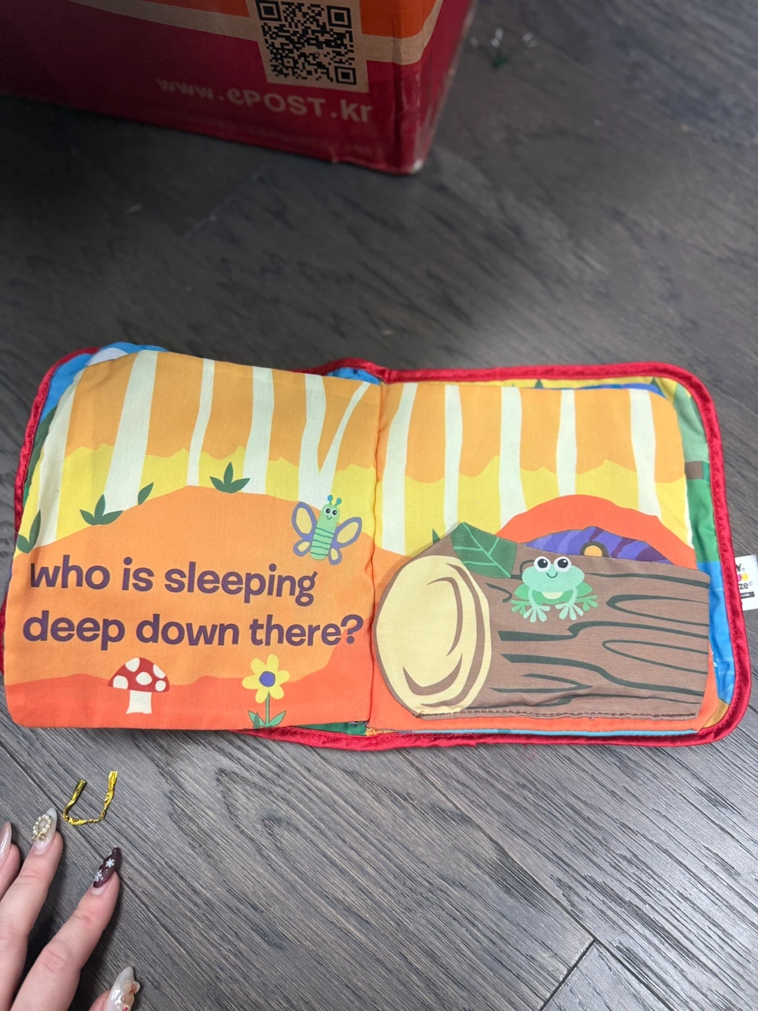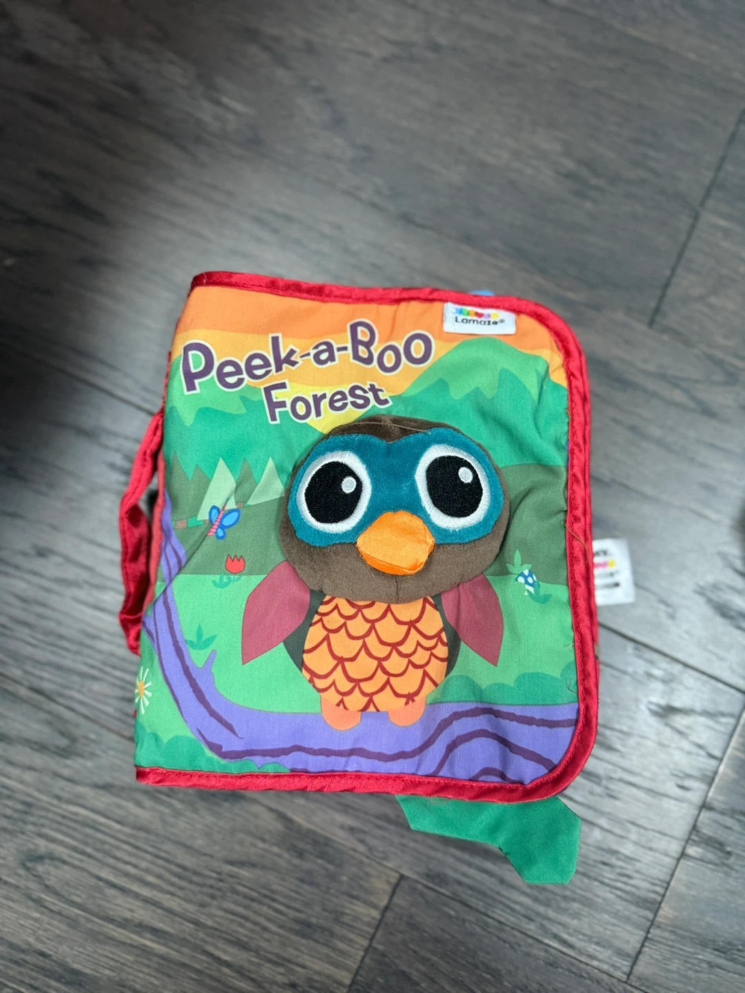 This is a soft book from Lamaze called Peek-A-Boo Forest! It's a great interactive toy for little ones. The book features bright colours and different textures to explore, perfect for sensory development