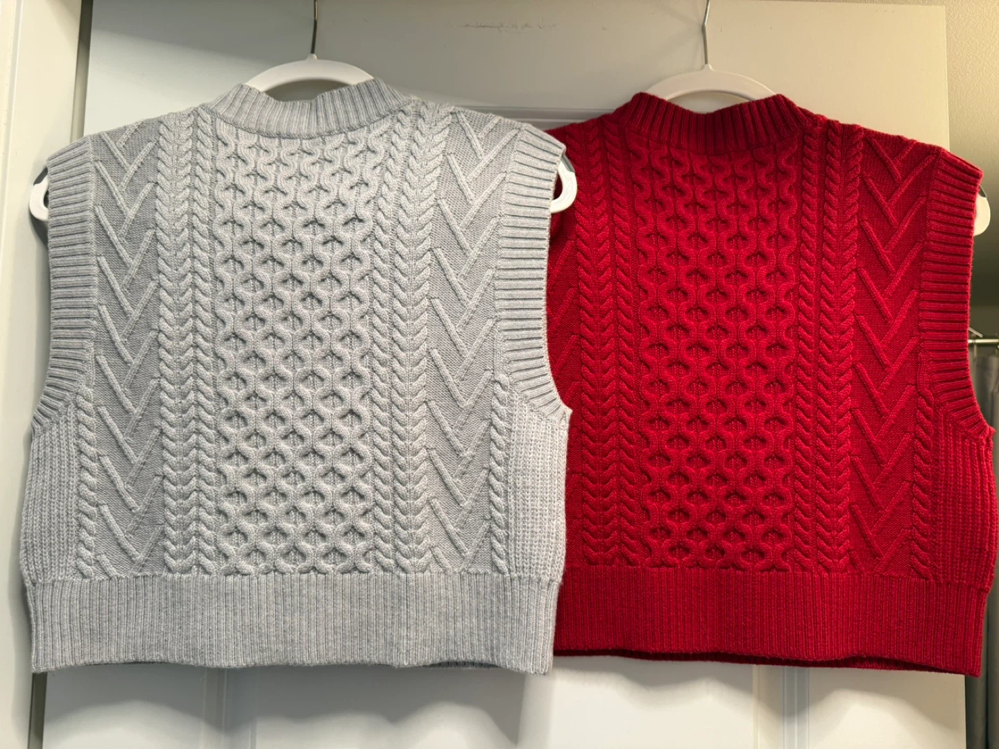 Selling two Babaton sweater vests! One is a lovely red, and the other is a versatile grey. Both are in great condition and feature a stylish cable knit design made with 100% Merino wool. Perfect for layering or wearing on their own.