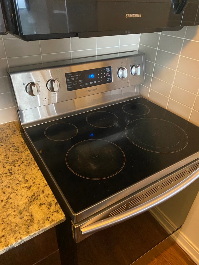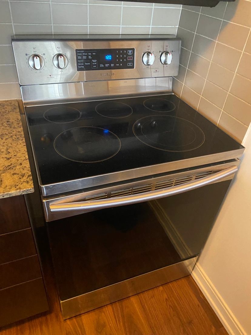 Samsung electric range with warming centre. Sparingly used, minor scratches. Moving out sale. Need to sell asap