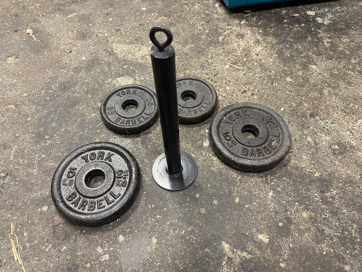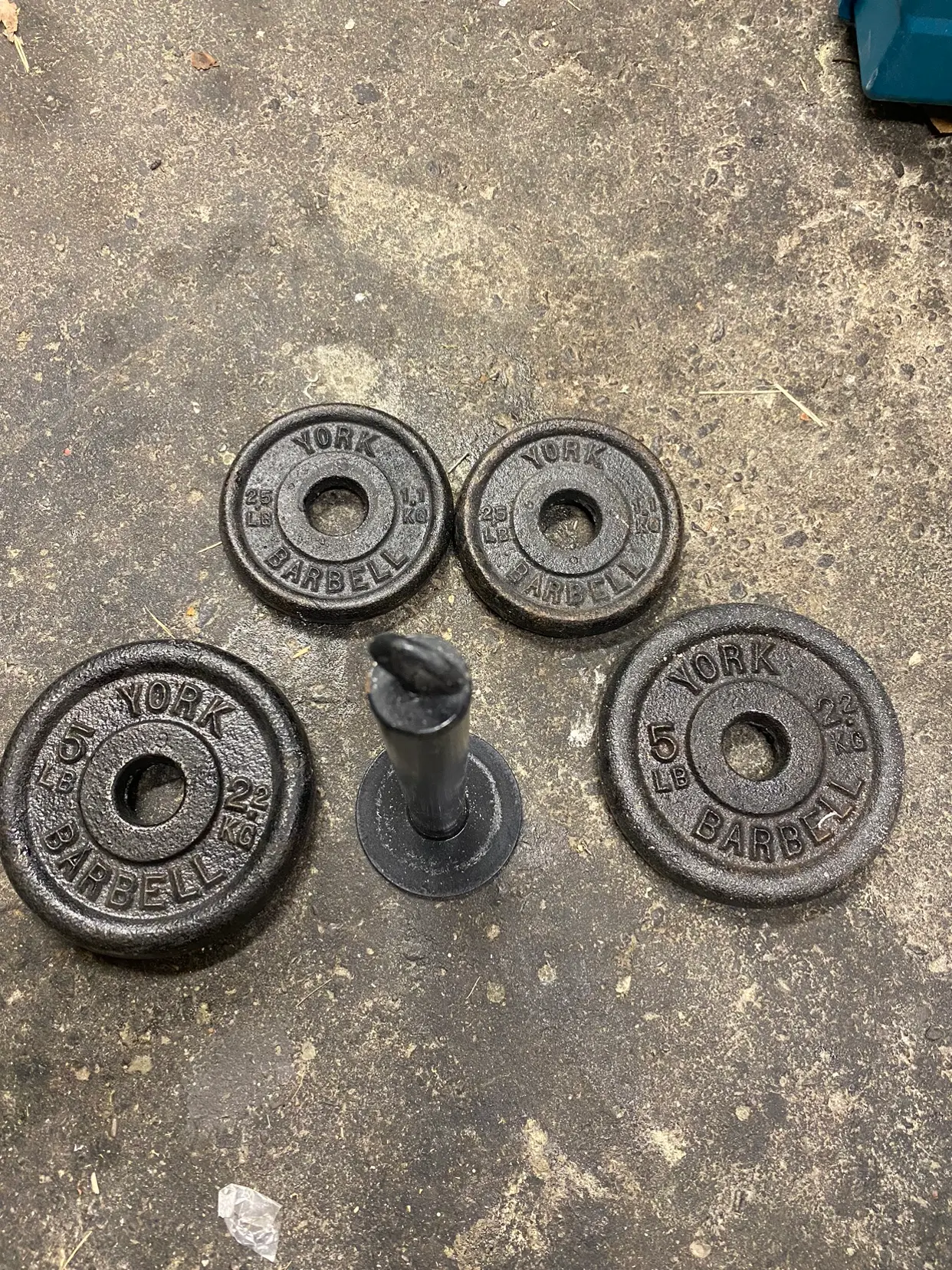 Free weights two 2.5 lb, two 5 lb with stand QEW & Dixie