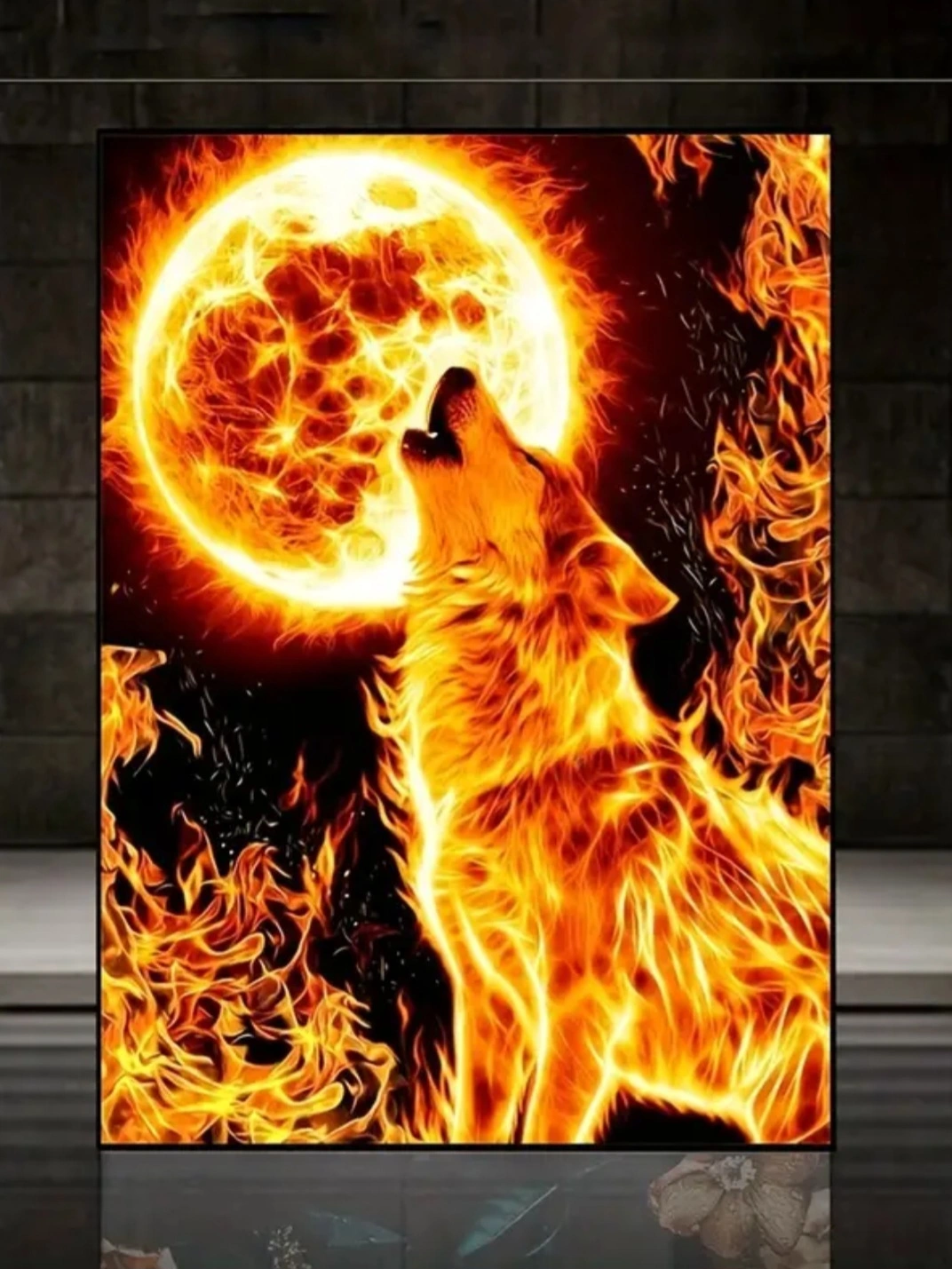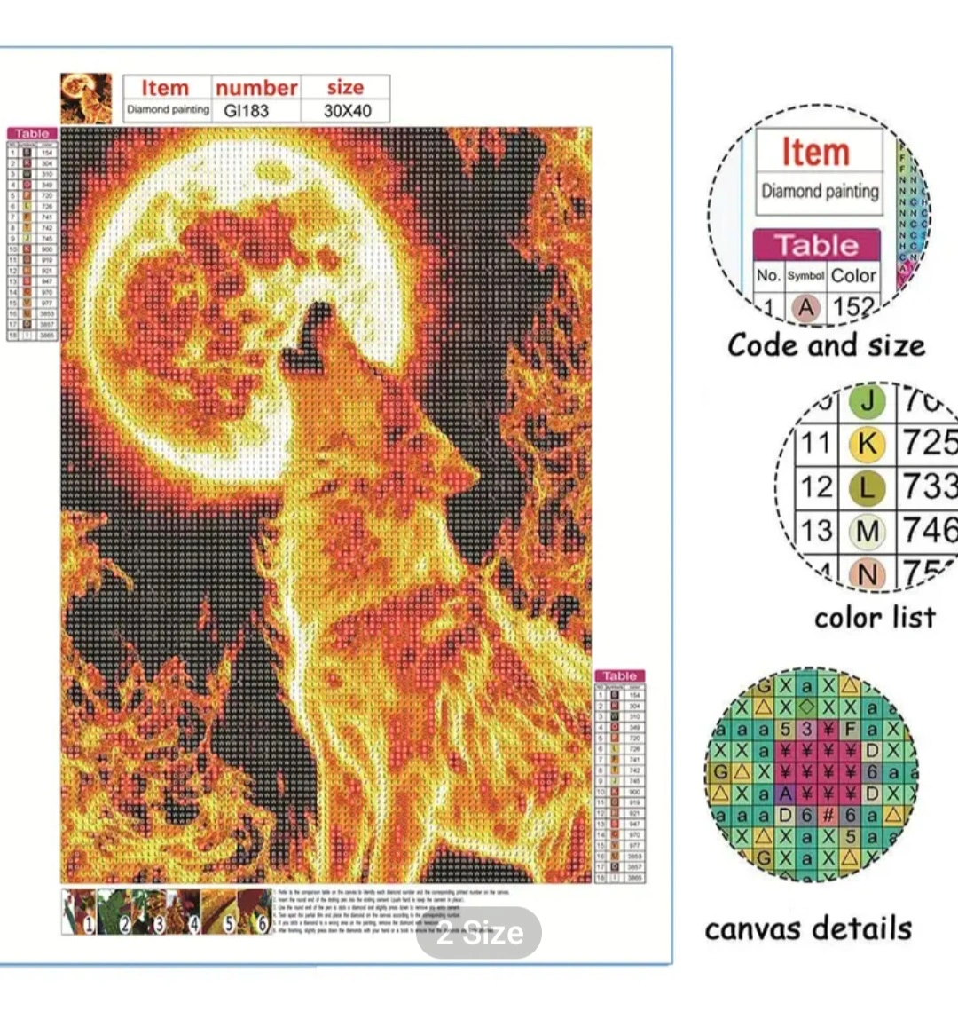 Full drill diamond painting kit of a wolf howling at the moon A Flower and A Rose This kits contains everything you need to create your own piece of art. Each sold separately