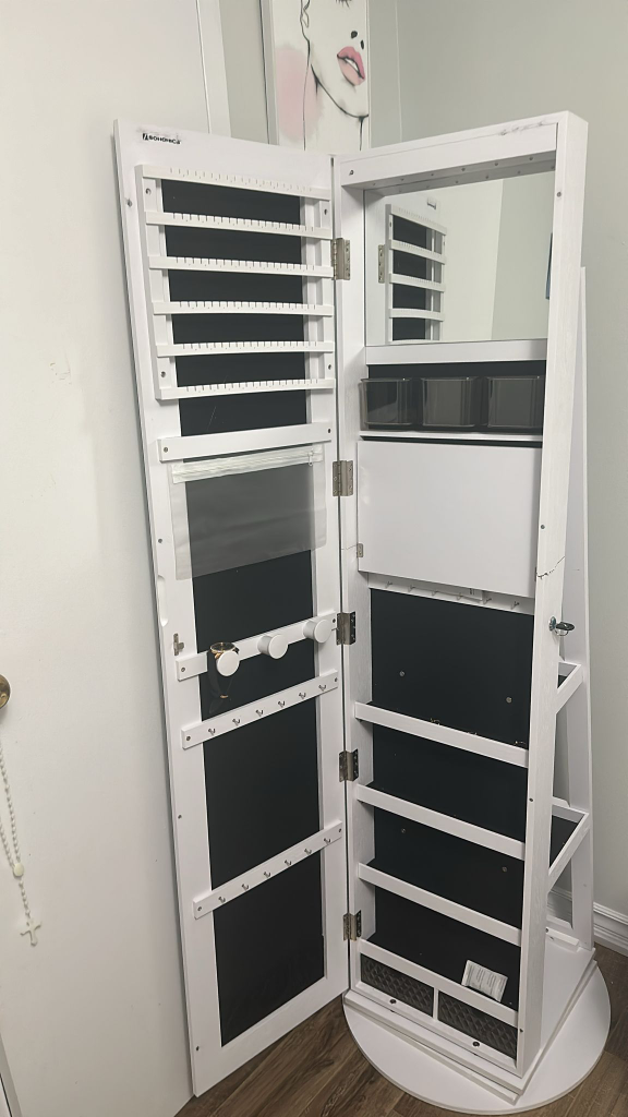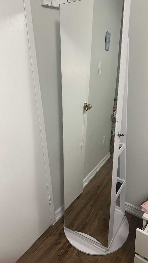 Buy & SellWhite Jewellery Armoire with Mirror on a carouselWhite Jewellery Armoire with Mirror on a carousel$150Full-length mirror with jewellery storage. Includes shelves, drawers and hooks. come in rustic Brown or pearl white. won't last......ConditionNewDimensions61 " L x 14" 5/8 w x 4" d1 chats·1 favorites·145 viewsSELLERverifiedDavid AlexanderScotiabank33825 reviewsWHERE TO MEETat my front door