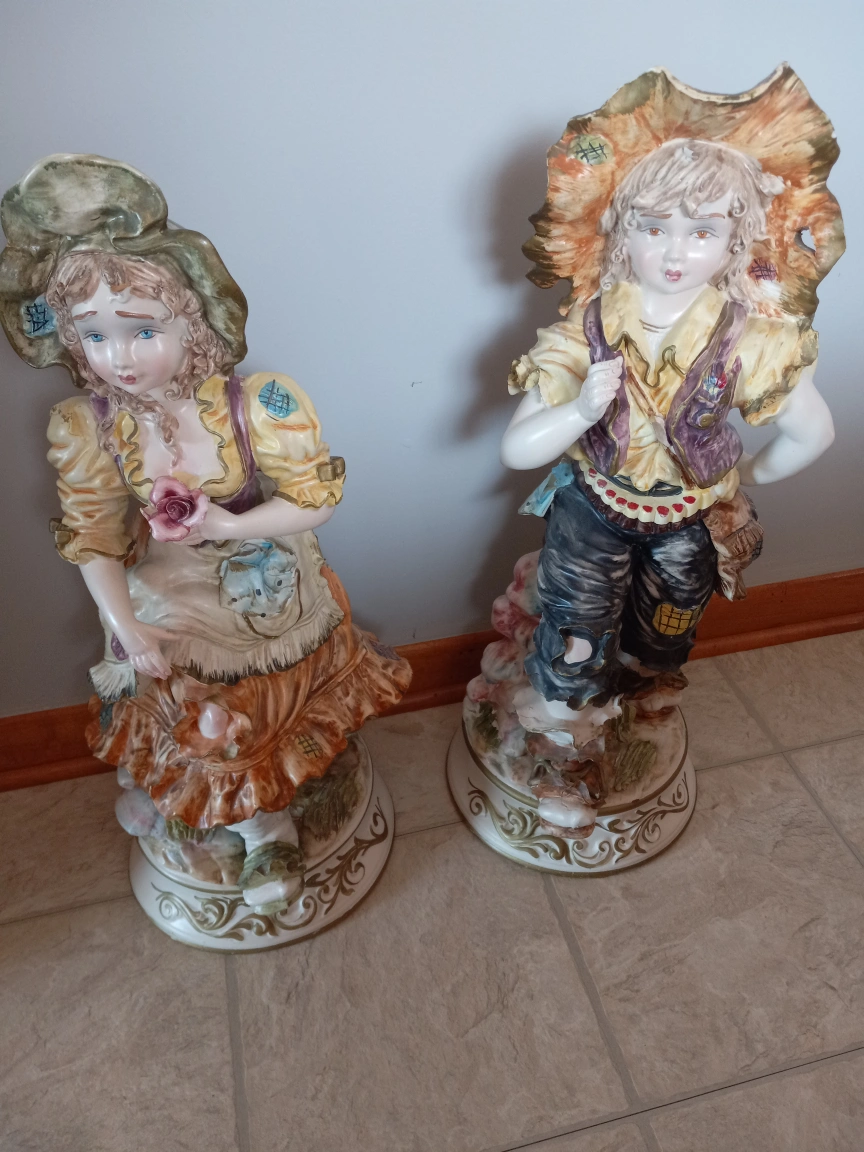 $110 each figurines, one of a girl and one of a boy. They are both standing and are 27 inches tall. They are in good condition. Made in Italy. Pick up near Kennedy and Eglinton.