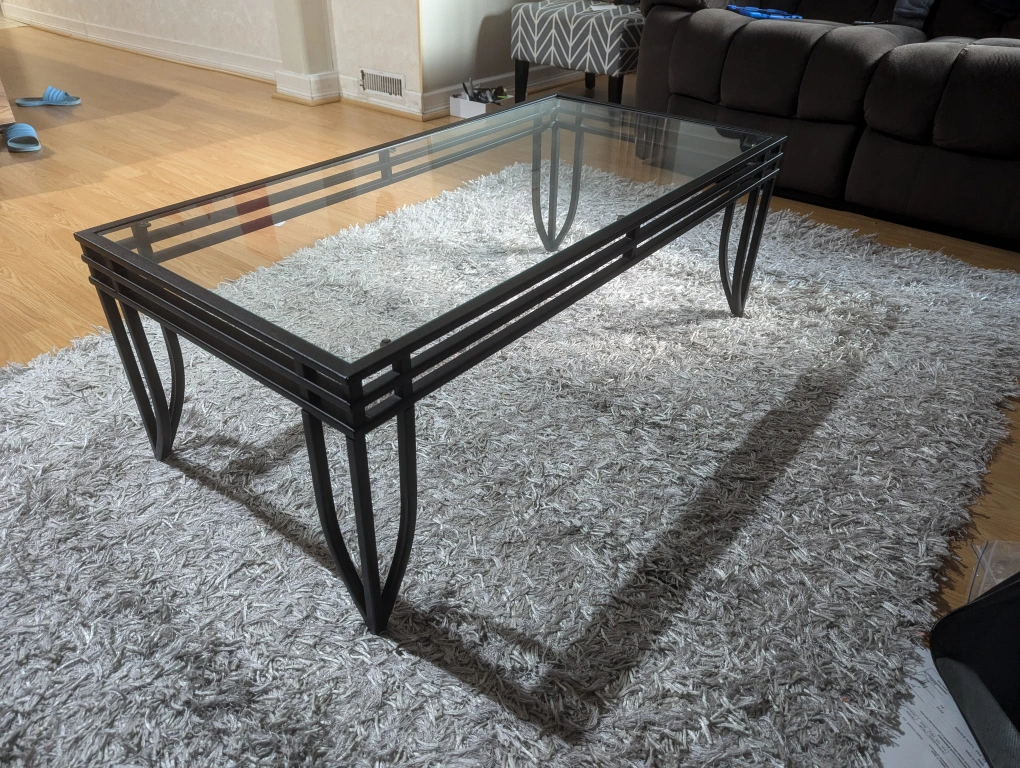 Glass top metal coffee table in excellent condition. Measurements 44*22 inches.