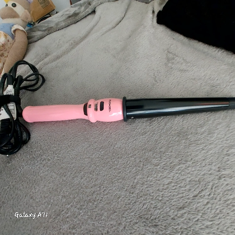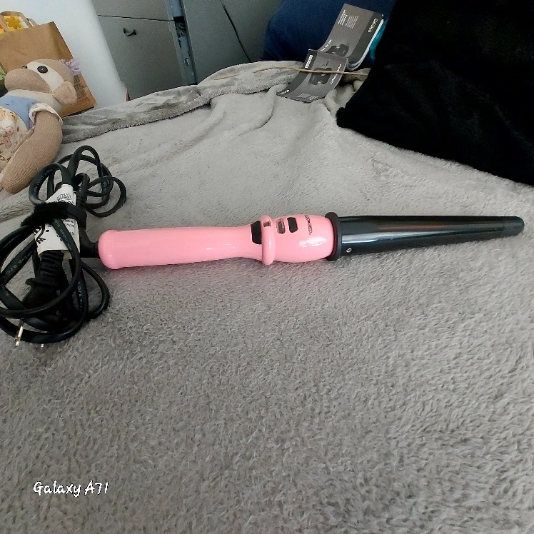 146*1" TAPERED BARREL-CURLING WAND. *LIKE-(BRAND) NEW. *CLEAN & MARKINGS/SCRATCHES. *COLOUR; PINK & BLACK. *long cord/plug with attached thin velcro tie.
