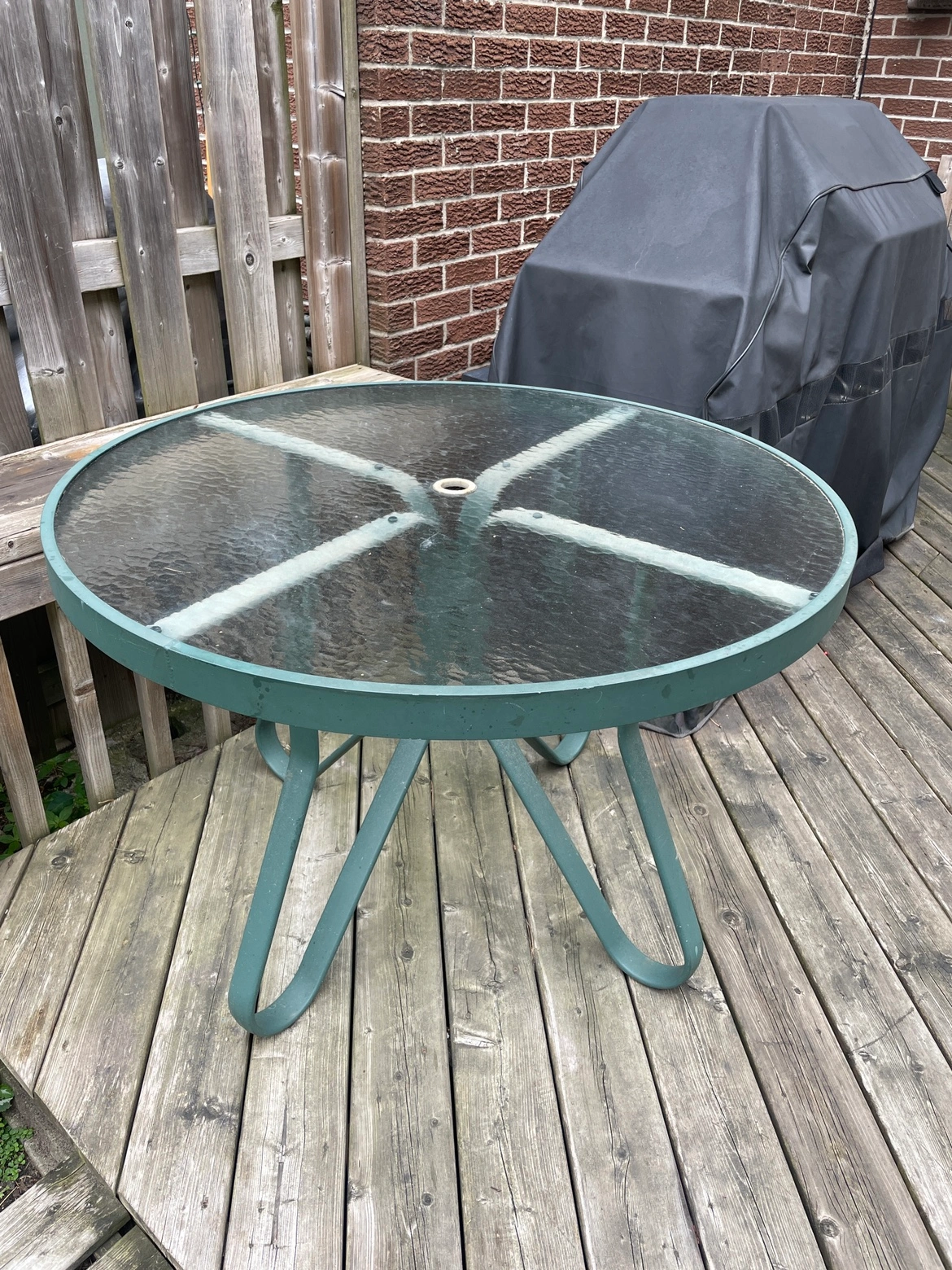 Buy & SellRound Patio TableRound Patio TableFreeGreen patio table with a glass top and a unique base design.WHERE TO MEETCheck LocationView MapSELLERAfraFlemingdon Park433 reviews3 chats·1 favorites·68 viewsSEND CHAT TO SELLERHi Afra! I’m interested in your listing.Hi Afra! I’m interested in your listing.Get the Karrot app to chatSign In to chat